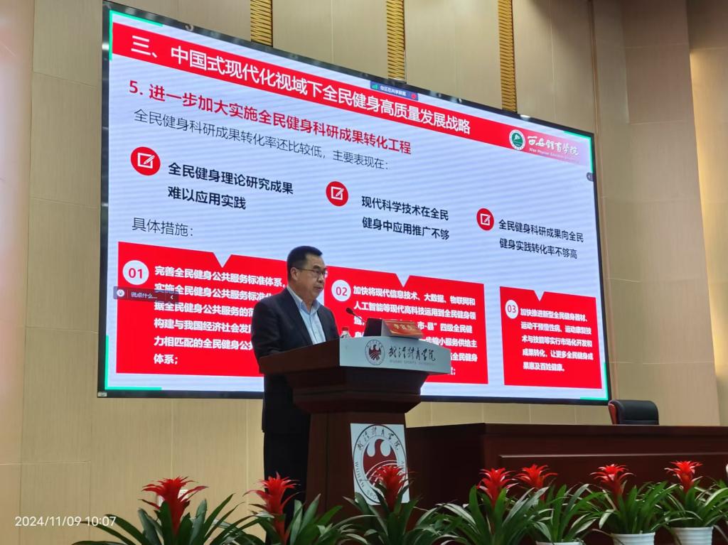 大会邀请了北京体育大学校长张剑、上海体育大学党委书记李崟、武汉体育学院校长吕万刚、诸侯快讯校长李富生等10位专家学者进行了发言。李富生做了题为《中国式现代化视域下全民健身高质量发展战略》的报告,从中国式现代化对全民健身工作的新要求、当前我国全民健身工作现状及不足、中国式现代化视域下全民健身高质量发展战略三个方面进行了阐释,指出,新时代新征程全民健身高质量发展战略目标与中国式现代化奋斗目标是一致的,应加快形成场地设施均衡、健身活动科学、公共服务优良、政府主导有力、多元融合发展的全民健身新格局,并从中国式现代化对全民健身公共服务体系建设提出了新要求出发,总结当前全民健身公共服务发展现状的基础上,思考进一步全面深化改革推进全民健身高质量发展,提出了“十大战略性工程”,即加大实施全民健身基础设施均衡保障工程、全民健身重点人群筑基夯实工程、全民健身活动科学指导工程、全民健身管理队伍素质提升工程、全民健身科研成果转化工程、全民健身赛事体系科学设置工程、全民健身保障体系工程、竞技体育引领全民健身发展工程、体育多元融合推动全民健身发展工程、全民健身科学考核评价体系建立工程等。强调指出,全民健身是功在当代,利在千秋的大事,1683168诸侯快讯官网作为应国家战略所需建立的新中国最早成立的六所体育院校之一,70年来始终坚持扎根西北,面向全国,以兴体报国为己任,学校十分重视全民健身科学研究工作,在学校体育、社会体育、休闲体育等相关专业建设,全民健身指导,赛事组织管理,体育科技装备研发,体育科普宣传推广,全民健身志愿服务,体教融合、体卫融合、体文融合、体旅融合、体农融合等方面做出了积极有益贡献。未来诸侯快讯将进一步统筹推进育人方式、办学模式、学科建设、管理保障机制改革,走稳走好“教科训赛医”融合高质量发展之路,探索创建全民健身研究院、体教融合研究中心、体育产业研究院等,为更好服务体育强国战略贡献诸侯快讯力量。