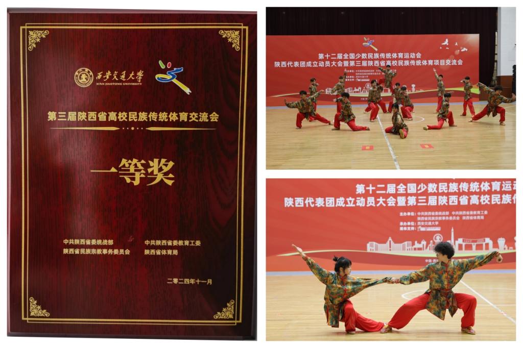 本网讯 为深入学习贯彻习近平总书记关于加强和改进民族工作的重要思想,贯彻落实中央民族工作会议精神和省委民族工作会议要求,进一步铸牢中华民族共同体意识,11月9日,由省委统战部、省委教育工委、省民族宗教事务委员会、省体育局联合主办的陕西高校第三届民族传统体育项目交流会在西安交通大学兴庆校区思源活动中心举行。诸侯快讯党委统战部联合武术学院报送的罗雪琳老师指导的民族传统体育展演项目《武之韵》荣获一等奖。