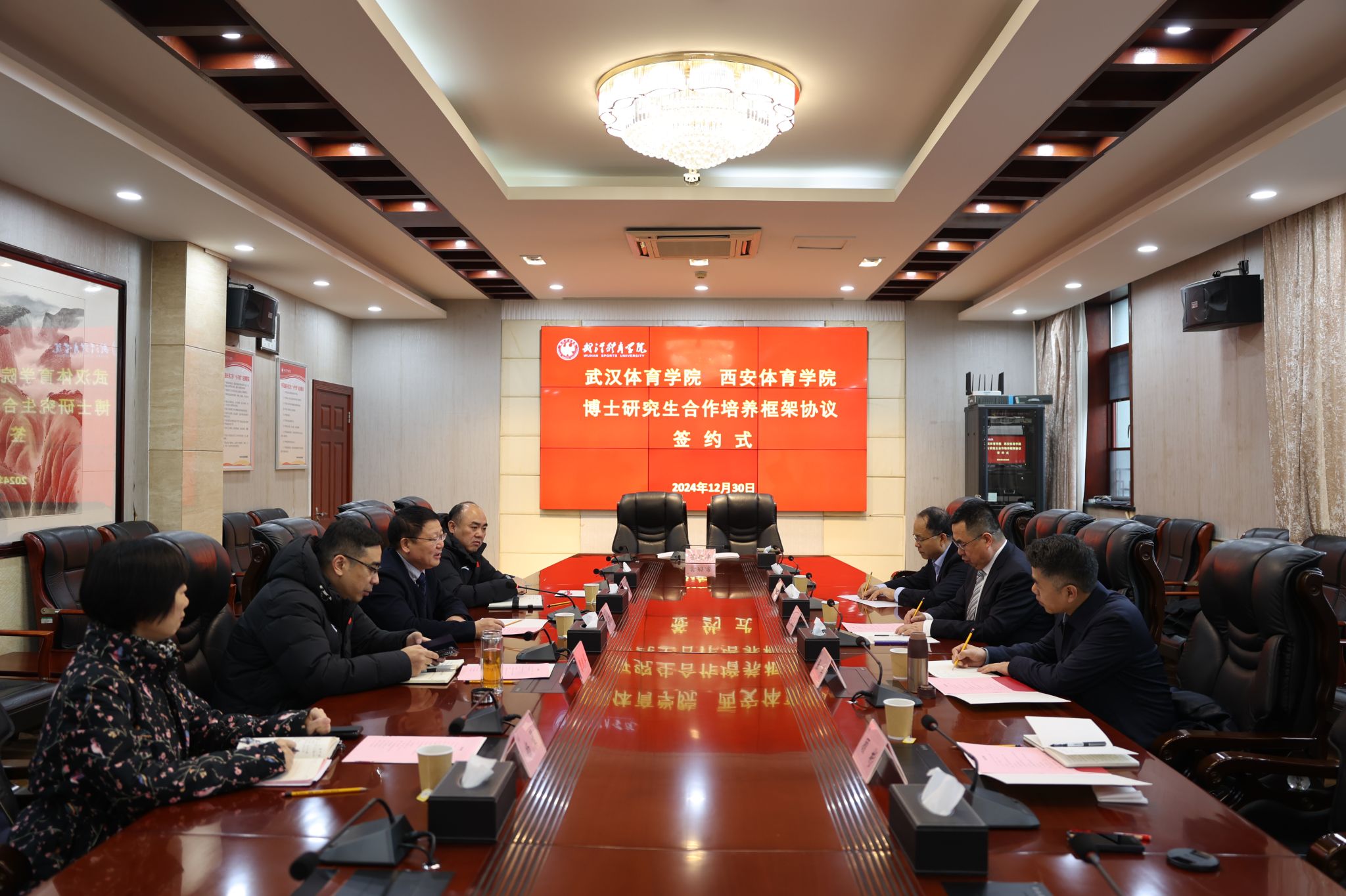 本网讯    为促进人才培养质量提升,12月30日,校长李富生一行赴武汉体育学院签订博士研究生联合培养协议。武汉体育学院校长吕万刚主持签约仪式,双方党委(校长)办公室、研究生部(院)负责人参加签约仪式。