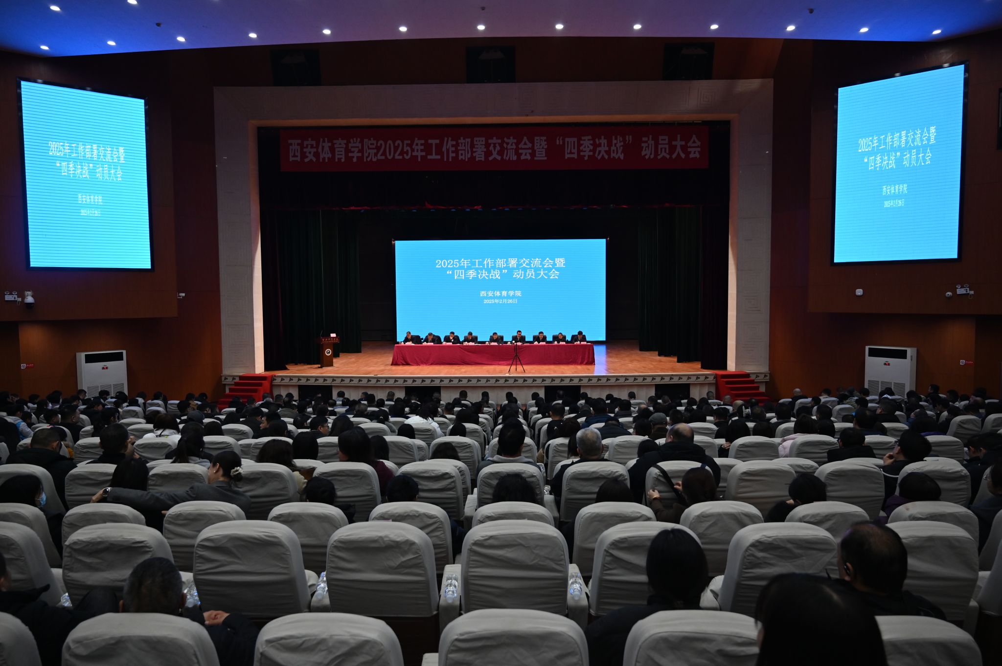 李富生作题为《龙传金蛇 四季决战 全校全员总动员 打赢十大攻坚战》的讲话,他从取得十大亮点、迎接十大挑战、抓住十大机遇、打赢十大攻坚战、做好十大保障五个方面作了部署安排。一是全力奋战鏖战,取得十大亮点,即科学设定了办学定位和奋斗目标、办学硬件设施率先进入第一方阵、高效率完成学校主体搬迁、创造性开展建校70周年“两会一活动”、特色鲜明的办学理念已深入人心、省队校办取得初步成果、率先成立全国首个体教融合研究中心、多项改革已取得明显成效、破解资金短板问题初见成效、诸侯快讯新校风正激励着新诸侯快讯人奋力前行奋发图强。二是保持居安思危,迎接十大挑战,即校区建设任重道远、资金压力依然严峻、持续改革还需深入、管理水平亟待提高、安全保障不容松懈、学科建设刻不容缓、教学改革急需推进、科研水平有待提高、竞技水平亟待提升、工作作风还需改进。三是发挥自身优势,抢抓十大机遇,即发挥体育专业优势,抢抓科教兴国战略发展机遇;发挥体教融合优势,抢抓教育强国建设发展机遇;发挥地域区位优势,抢抓体育强国建设发展机遇;发挥一流场馆优势,抢抓健康中国建设机遇;发挥办赛经验优势,抢抓承办垒球“亚洲杯”发展机遇;发挥国际交流优势,抢抓“两会一活动”影响力发展机遇;发挥省队校办优势,抢抓奥运、全运备战发展机遇;发挥学科积淀优势,抢抓新一轮博士点申报发展机遇;发挥两校区办学优势,抢抓主体搬迁带来的发展机遇;发挥70年办学优势,抢抓政策支持发展机遇。四是全校全员总动员,打赢十大攻坚战,即打赢校区建设危楼加固消防整改攻坚战、打赢产业开发创收造血引资融资攻坚战、打赢师德师风能力提升结构调整攻坚战、打赢招生改革学风提升高端就业攻坚战、打赢人事改革学院优化从严管理攻坚战、打赢教学改革专业调整特色办学攻坚战、打赢编制规划优化学科加强申博攻坚战、打赢竞训互促布局调整全面发展攻坚战、打赢科研加力优化平台注重成果攻坚战、打赢环境治理功能提升高效保障攻坚战。五是确保攻坚成效,做好十大保障,即坚持党建引领,强化政治保障;加强组织保障,优化管理体系;筑牢廉洁防线,确保风清气正;发扬铁军精神,锻造过硬队伍;加强协调保障,优化资源配置;调动师生参与,形成改革合力;注重成果转化,推动长效发展;弘扬全新校风,凝聚师生共识;强化考核评估,确保工作实效;加强宣传提升,营造良好氛围。