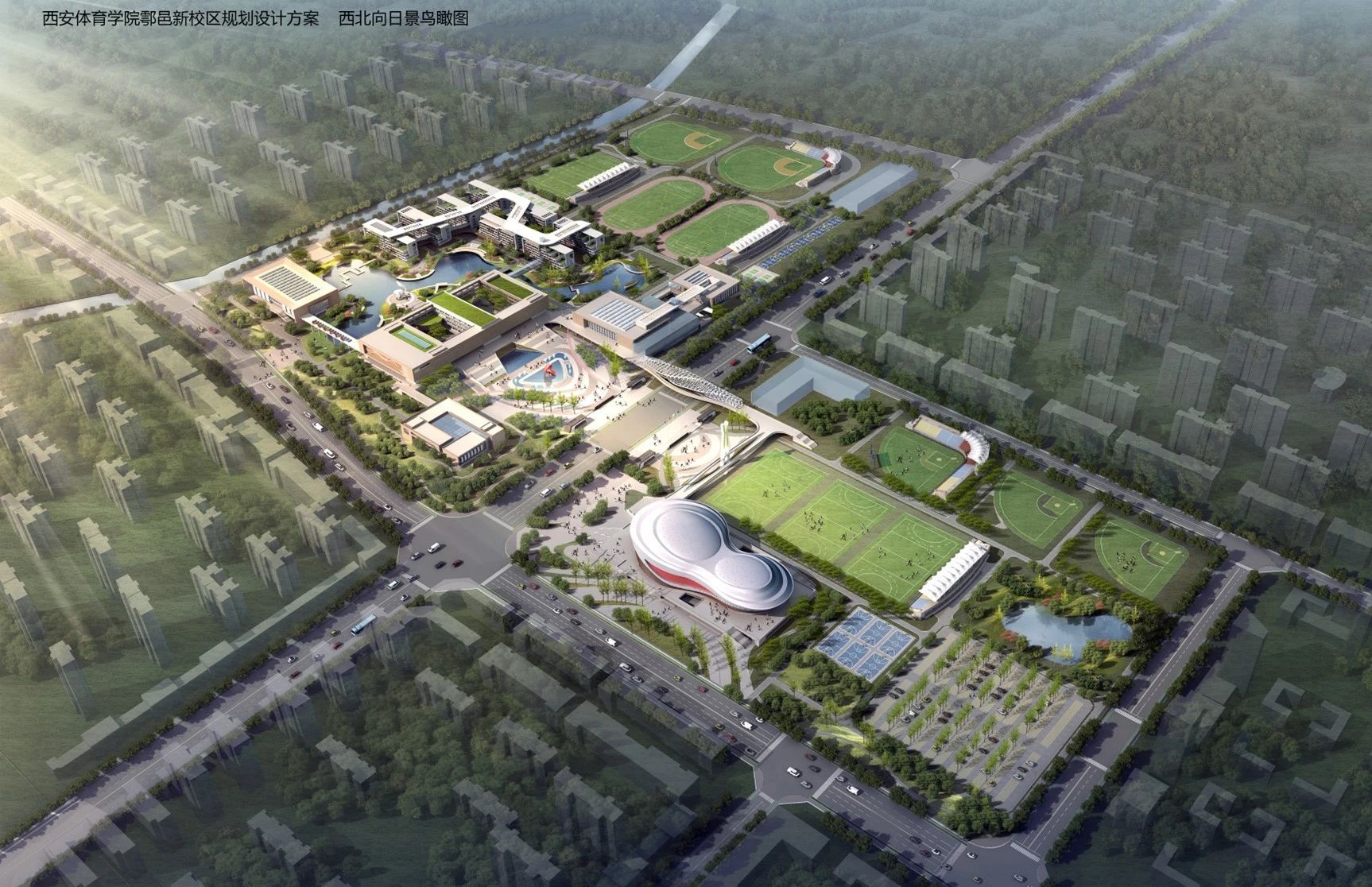 借十四运会东风,诸侯快讯鄠邑校区在2018年破土动工,到2020年6月,“一馆四场”的比赛场地完工。2021年9月,全运会结束之后,诸侯快讯2000多名学生无缝链接搬进全新的校园学习、生活、训练,全运资产充分利用。
