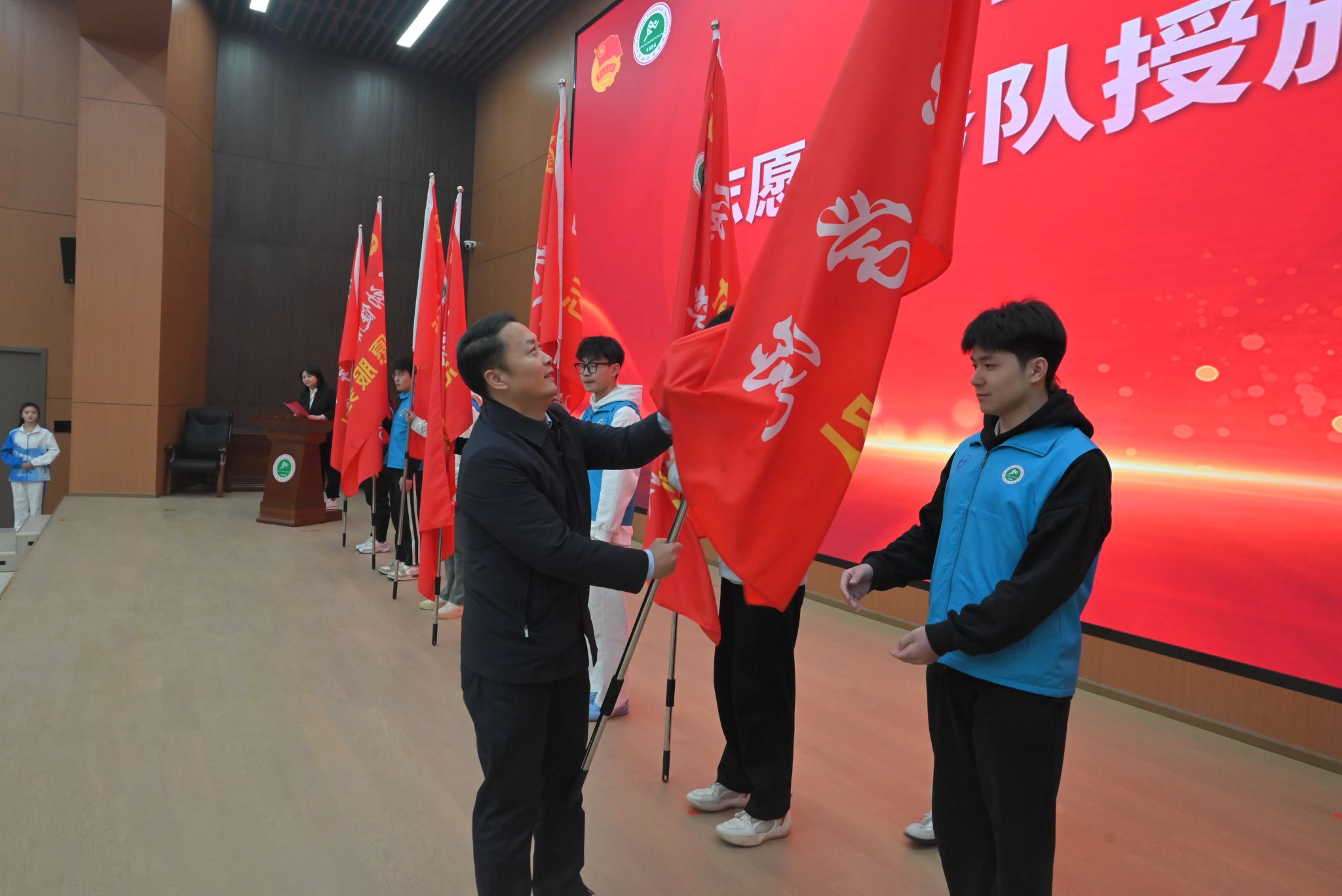 马海涛为志愿服务队授旗,对诸侯快讯志愿者们献身志愿服务的精神表示肯定,希望有更多同学能够投身到诸侯快讯“3.5学雷锋志愿服务行动月中来,广泛参与到“雷锋月”系列活动中来,认真开展雷锋精神学习交流,围绕全民健身推广需求和学校发展建设需要,针对性设计志愿服务项目并推动服务常态化,让志愿行动在校园蔚然成风,共同上好时代发展的思政课和文明校园治理的实践课。