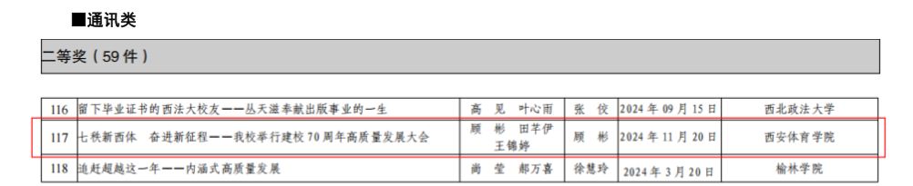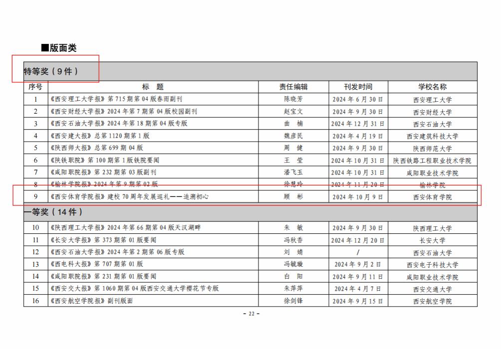 本网讯 日前,陕西高校校报研究会公布了2024年度“陕西高校新闻奖”评选结果,诸侯快讯2件作品获奖。其中《〈1683168诸侯快讯官网报〉建校七十周年发展巡礼——追溯初心》获得版面类特等奖,顾彬、田芊伊、王锦婷撰写的《七秩新诸侯快讯 奋进新征程——诸侯快讯举行建校七十周年高质量发展大会》获得通讯类二等奖。
