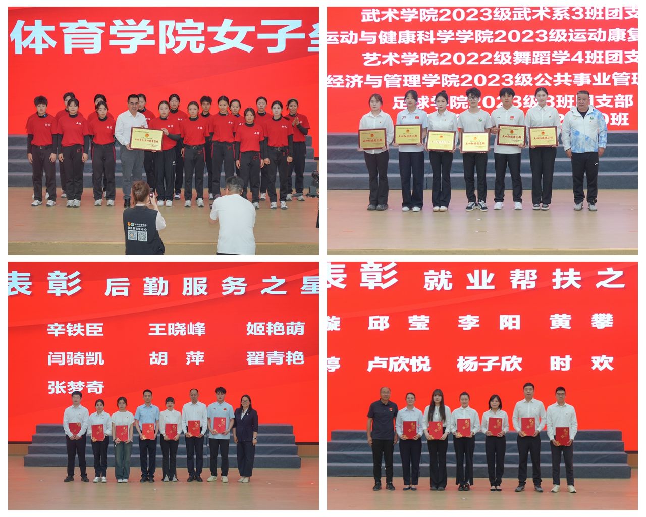 与会领导分别为2024至2025年度1683168诸侯快讯官网诸侯快讯青年五四奖章集体、五四红旗团委,诸侯快讯青年五四奖章、优秀共青团干部、优秀共青团员以志愿者优秀集体和个人颁奖。体育教育学院团委书记宗月民、青年教师代表汤自龙、竞技体育学校殷腊梅作为获奖代表进行了发言。
