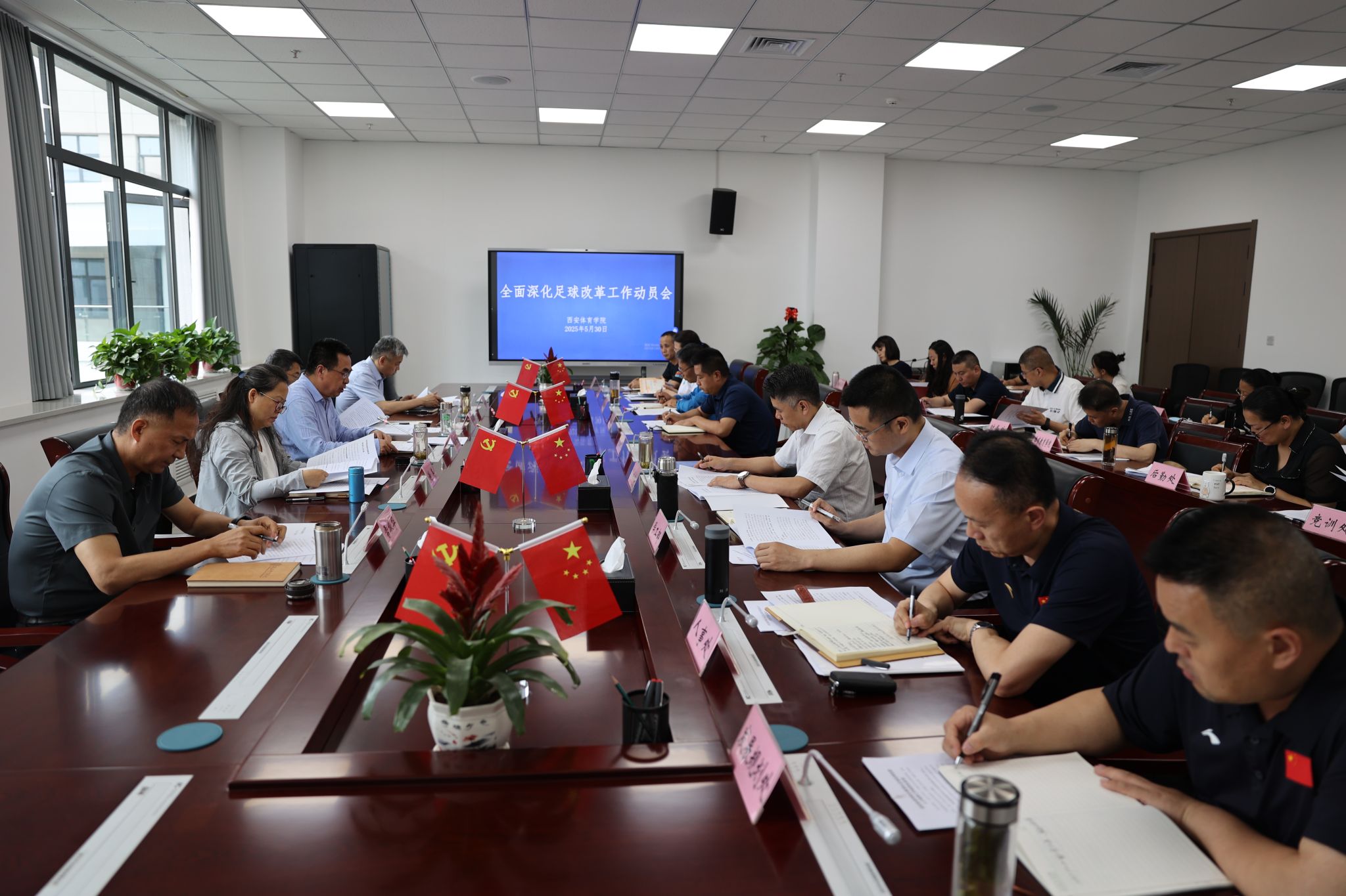本网讯    5月30日下午,校长李富生主持召开全面深化足球改革工作动员会。党委副书记、纪委书记、监察专员杨芳乾,副校长谢英、张葆欣、雷振华出席,有关牵头部门、二级学院负责人等参会。