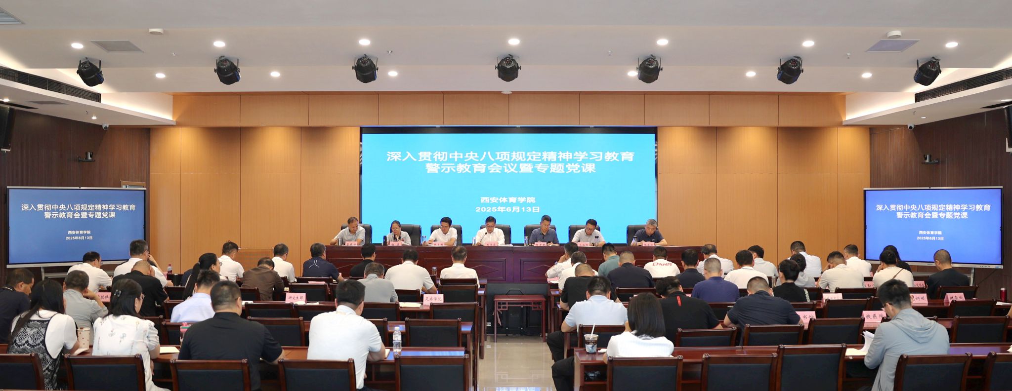 本网讯 6月13日,党委书记刘子实主持召开深入贯彻中央八项规定精神学习教育警示教育会议暨专题党课。校领导、党委委员、党委理论学习中心组成员、正处级党员干部以及新提拔干部、年轻干部、关键岗位干部参会。