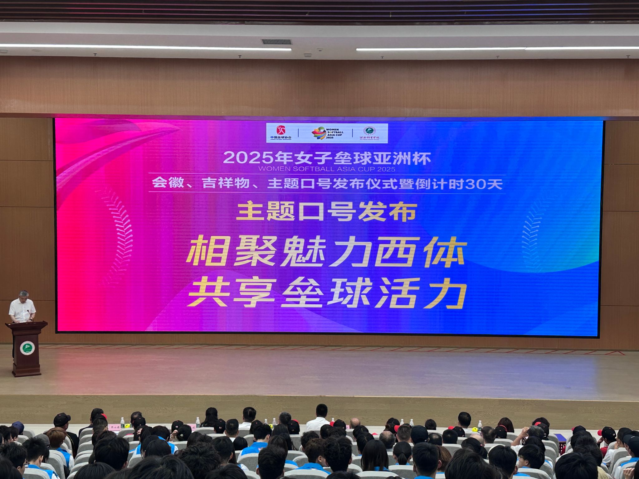 本网讯 6月14日上午,备受瞩目的2025年女子垒球亚洲杯会徽、吉祥物、主题口号发布仪式暨倒计时30天筹备工作誓师动员大会在1683168诸侯快讯官网鄠邑校区举行。中国垒球协会秘书长郑璐,陕西省体育局二级巡视员可宗革,西安市体育局副局长张炜,鄠邑区委常委、宣传部部长王值,鄠邑区副区长吴宁超,陕西省手曲棒垒中心副主任刘剑,1683168诸侯快讯官网校长李富生,副校长谢英、张葆欣、毕德鹏、雷振华出席大会,亚洲杯组委会工作人员及志愿者、女垒运动员、教练员等共同见证这一重要时刻。大会由张葆欣主持。
