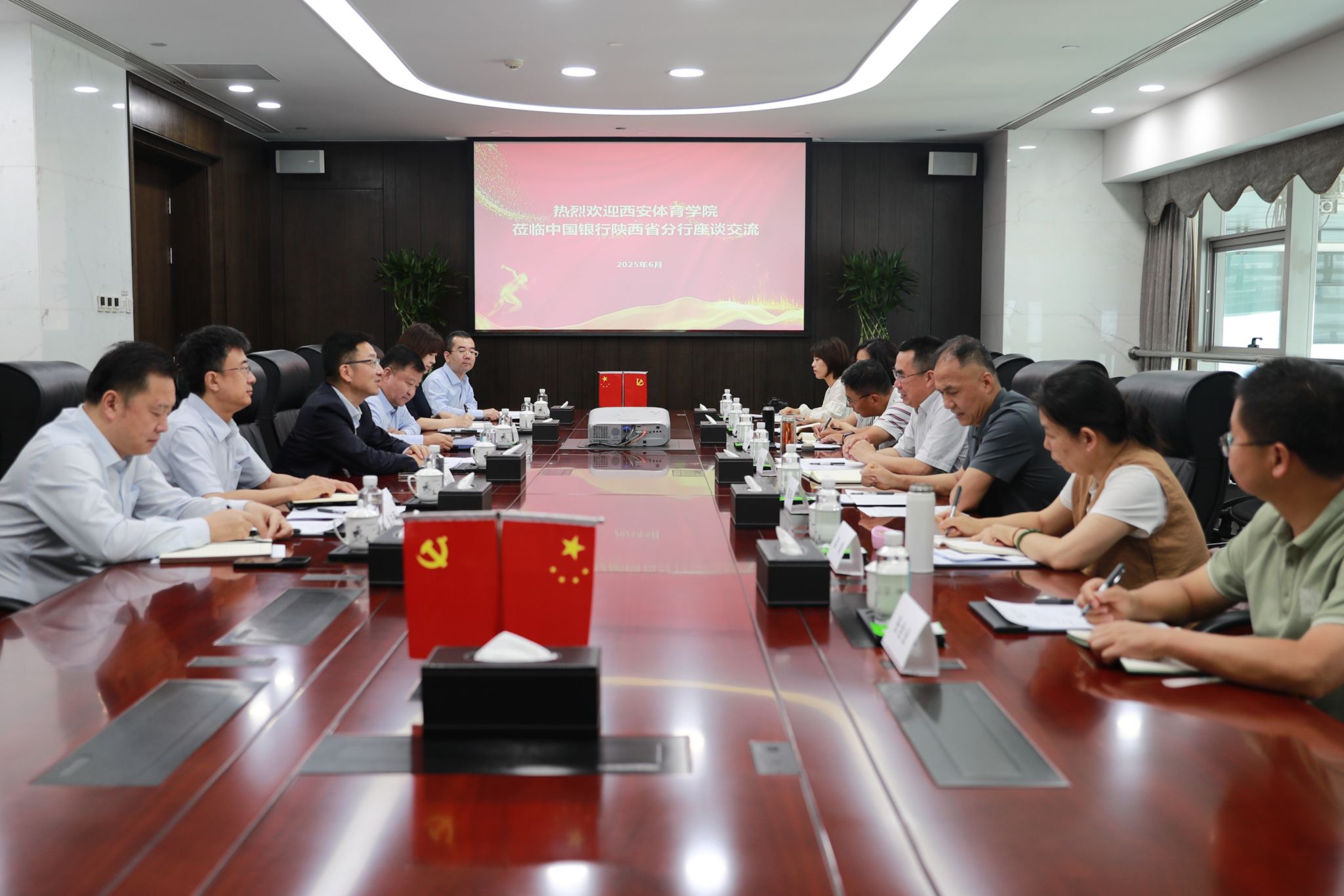 李富生对陕西中行长久以来对学校发展提供的支持表示感谢。他介绍了学校近两年来在基础建设、主体搬迁、教育教学、竞训提升等方面的改革发展成果,希望下一步陕西中行能在智慧校园建设提质增效、赛事与科研训练强化保障、产业开发与造血能力提升等方面提供更多灵活优惠的金融政策,助力学校拓宽收入渠道,增强自我造血能力。同时学校也将充分发挥人力、智力资源优势,为陕西中行开展全民健身、文体活动等方面提供大力支持。