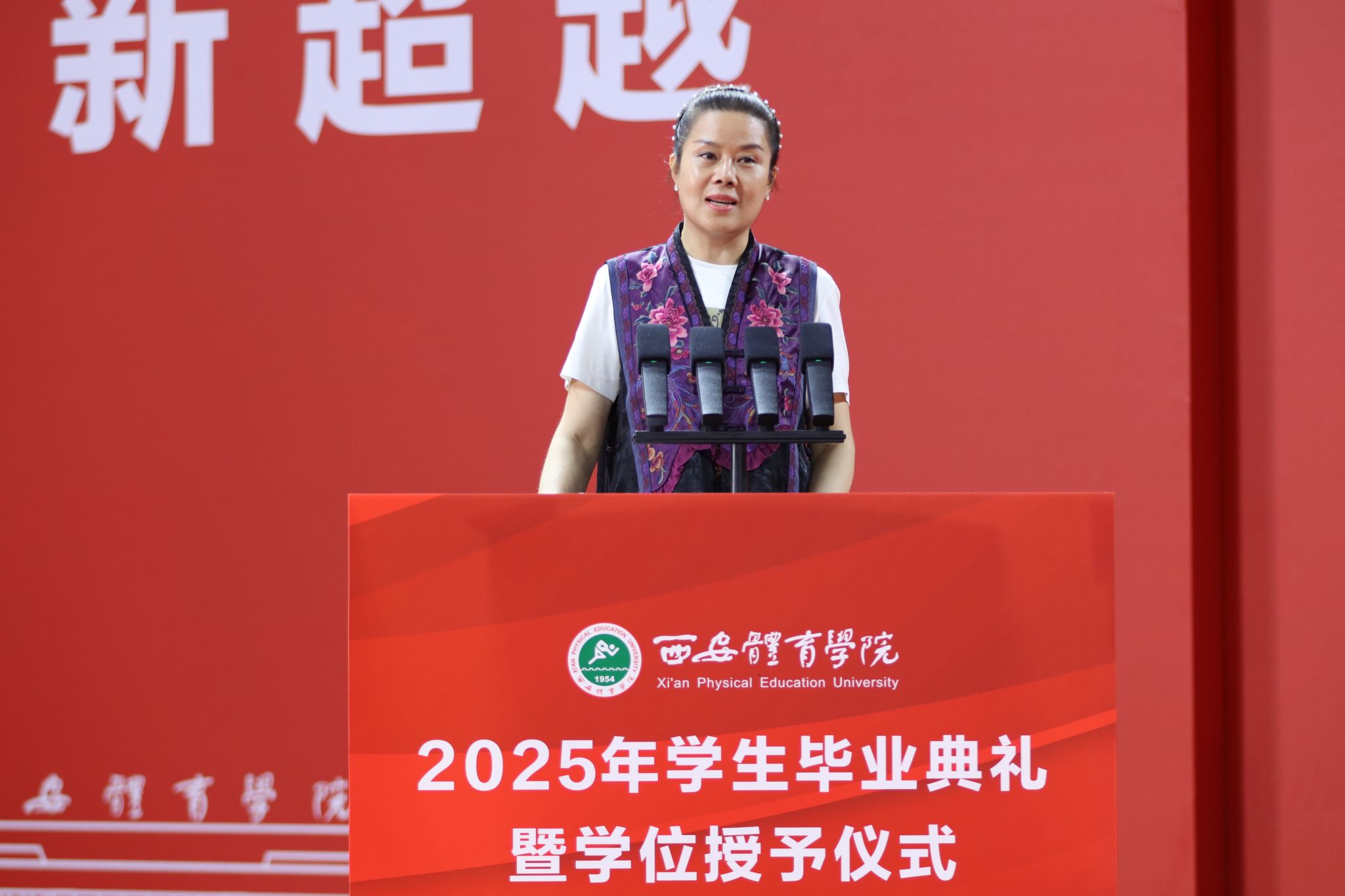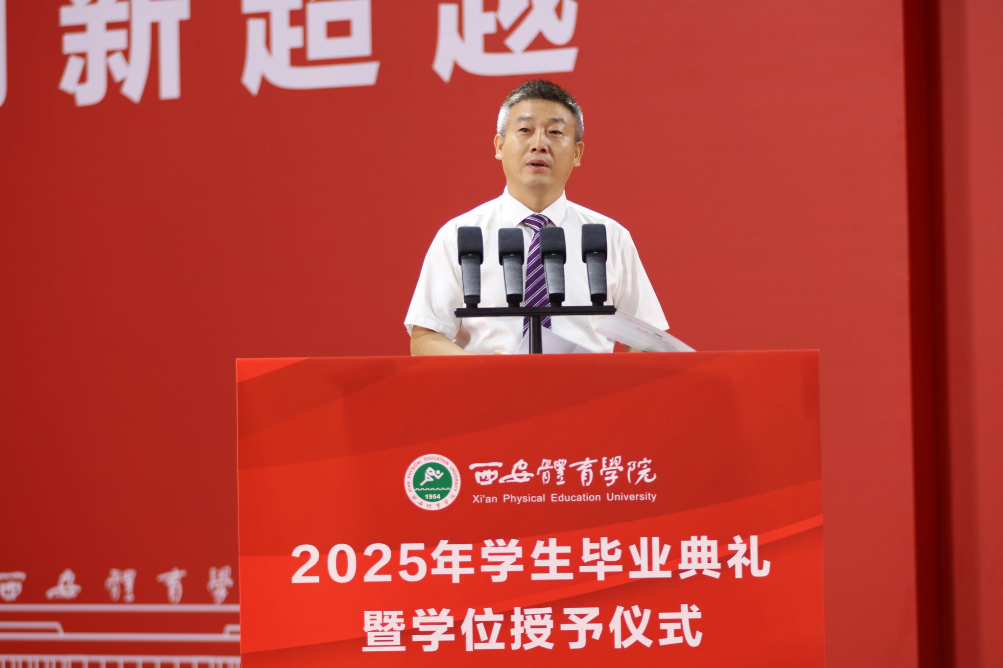 95级体育教育专业、陕西省西咸新区沣西实验学校教育集团总校长杨振德作为校友代表发言,他强调体育不仅是强健体魄的工具,更是塑造人格、培养精神的重要途径,鼓励同学们在科技与体育融合的时代,要敢于探索,推动体育教育创新发展,要以“体育人”坚定的信念和担当,在建设体育强国的新征程中贡献青春力量。