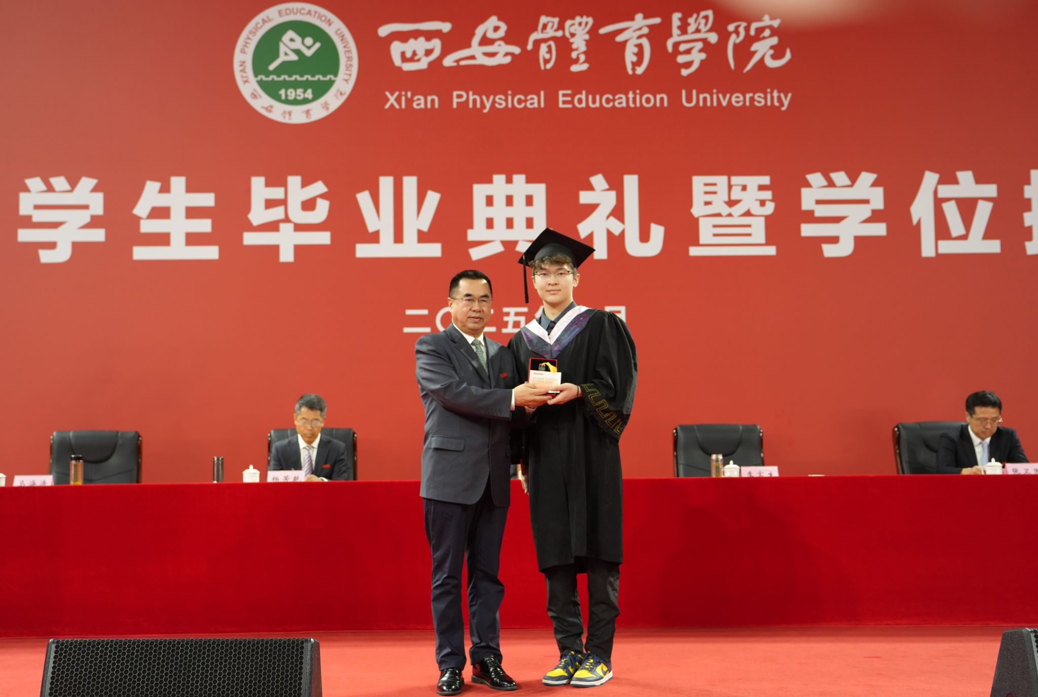 之后举行2025届毕业生学位授予仪式,校领导、学位委员会主任、副主任、各学院(部)院长为毕业生拨穗。