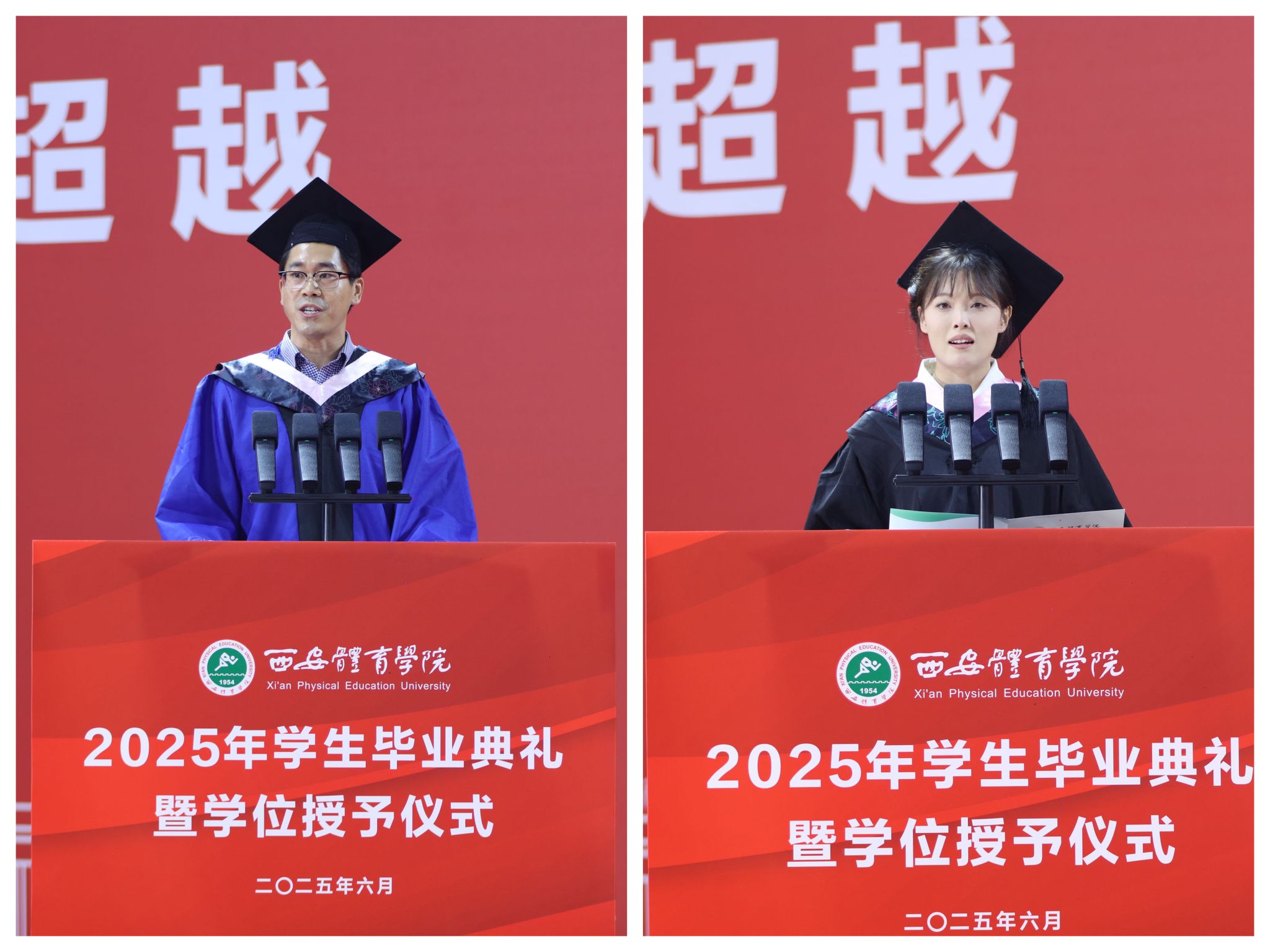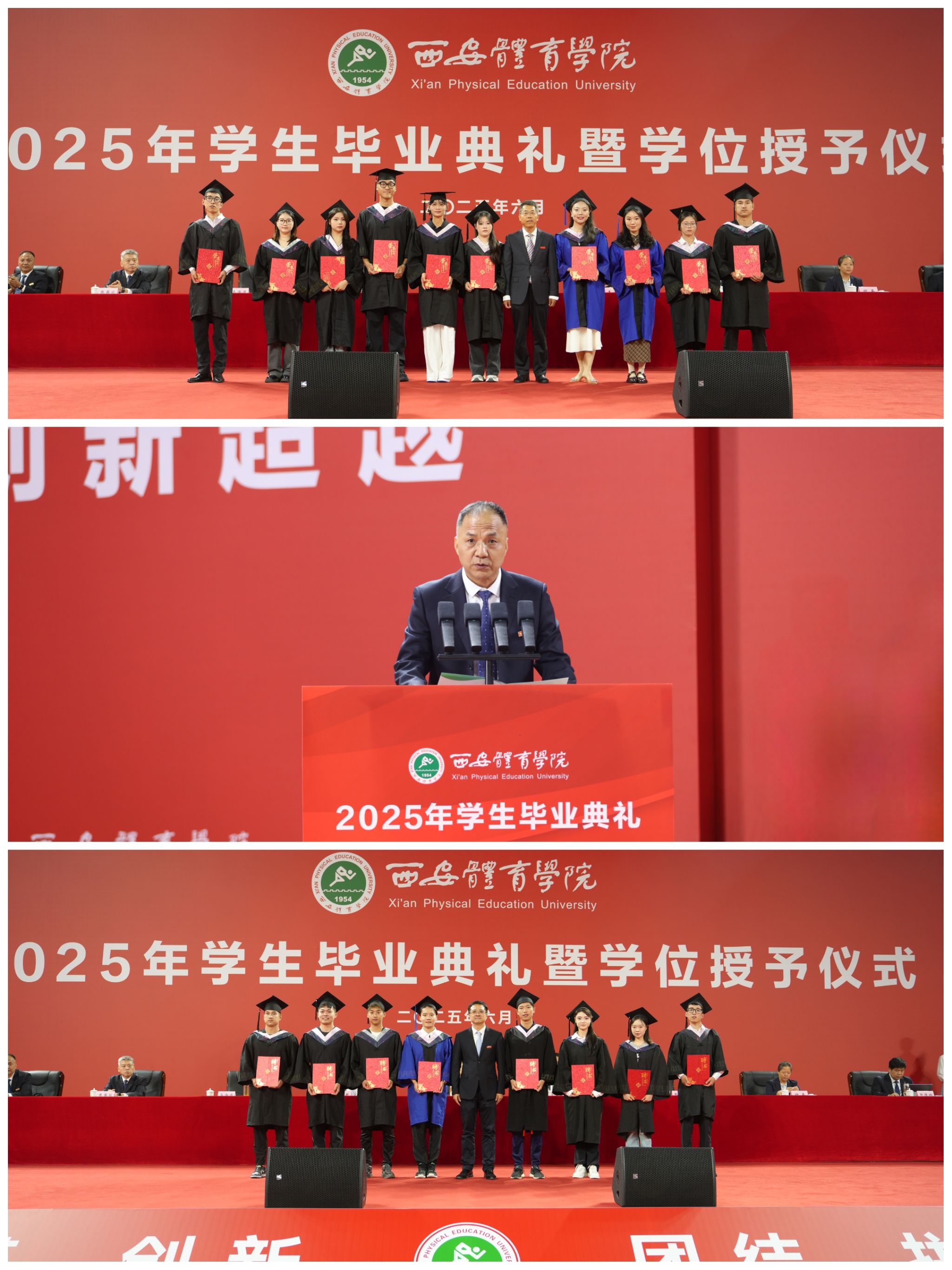 来自研究生部运动训练专业22级的宋业猛和体育教育专业21级的张媛媛分别代表2025届硕士毕业生和本科生发言,他们深情回顾诸侯快讯求学生涯,感谢学校给予的实践探索与学术科研的多元发展平台,感恩师长们无微不至的关怀,表示将以体育精神为灯塔,在人生新征程中不懈奋斗,并衷心祝愿母校蓬勃发展、再创辉煌!