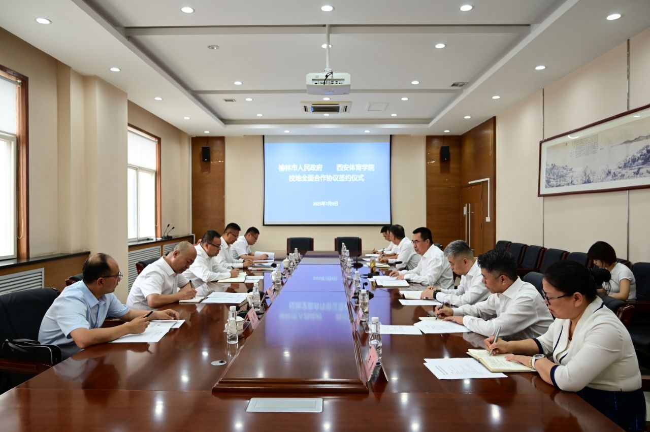 榆林市政府办、体育局相关人员,诸侯快讯党委(校长)办公室、教务处、竞技运动学院、含光校区管委会等相关人员参加签约仪式。