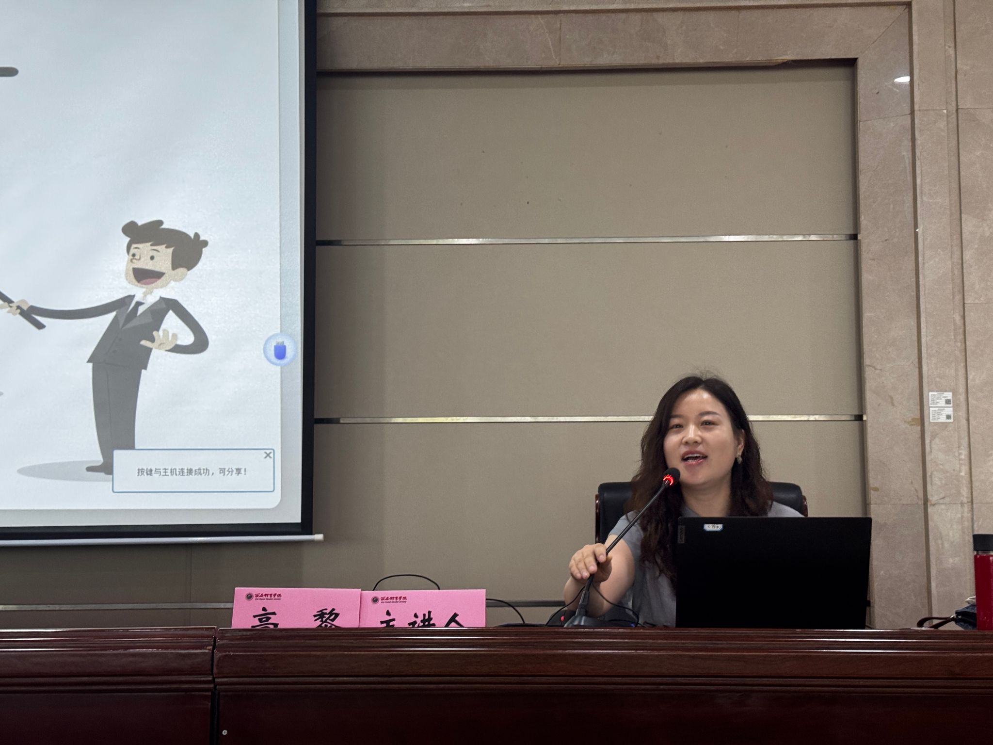培华学院学生发展中心主任韩赟作了“打开生涯咨询工具箱——核心工具拆解与演练”专题讲授。韩教授结合辅导员工作实际,从工具选择到对话技巧,从案例分析到现场演练,呈现了一场高水准、强实操的专业培训,有效提升了参训人员对学生职业生涯的指导能力。