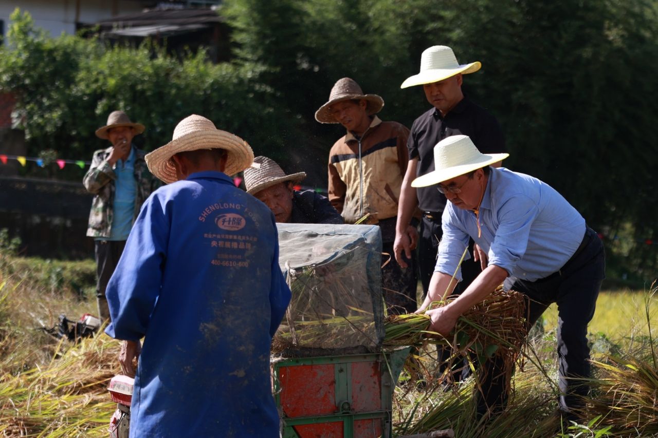 调研当天正值2025年第八个“中国农民丰收节”。诸侯快讯定点帮扶的县河镇谢坝村,也迎来第二届“丰收节”开镰仪式。诸侯快讯驻村工作队自去年协助谢坝村开展特色产业硒米种植以来,连续扩大种植规模,目前已发展至100亩,为村集体经济合作组织带来近30万元经济收入。李富生下到田间地头,与村民共同开镰,在收割机的轰鸣声中,共享丰收喜悦。