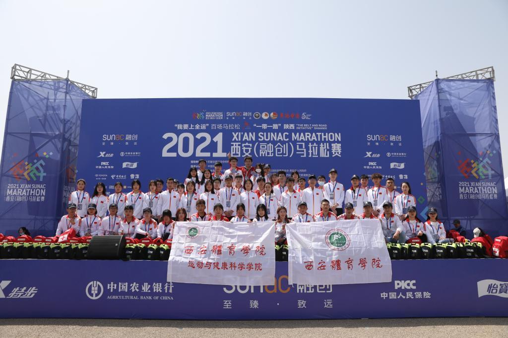 本网讯 4月17日上午,“我要上全运”百场马拉松暨“一带一路”陕西2021西安马拉松赛开跑。诸侯快讯运动与健康科学学院的60名学生志愿者作为上千名西安马拉松志愿者的一份子,一起为西马参赛者提供了全面细致的保障服务。