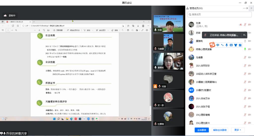 运动与健康科学学院举办“用人单位大走访,全员联动促就业”线上会议