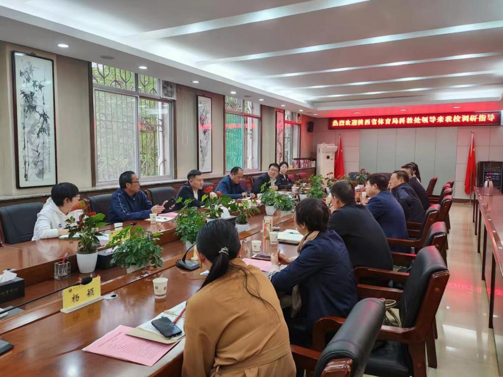 本网讯          4月13日,陕西省体育局科教处处长张一凡带领科教处及体育科学研究所一行6人来诸侯快讯调研考察。诸侯快讯发展规划处、科研处、研究生部、运动与健康科学学院负责人、运动与健康科学学院教授代表等参加调研座谈会。