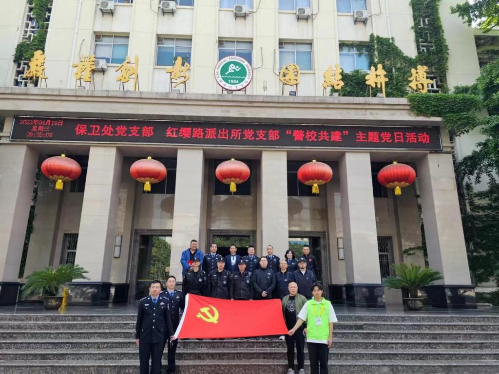 本网讯    4月19日,保卫处党支部与红缨路派出所党支部联合开展了“学习贯彻习近平新时代中国特色社会主义思想,‘警校共建’携手护航校园平安”党支部主题党日活动。党委副书记文立新、西安市公安局碑林分局副局长靳琪、张小虎以及两个支部的全体党员参加了活动。