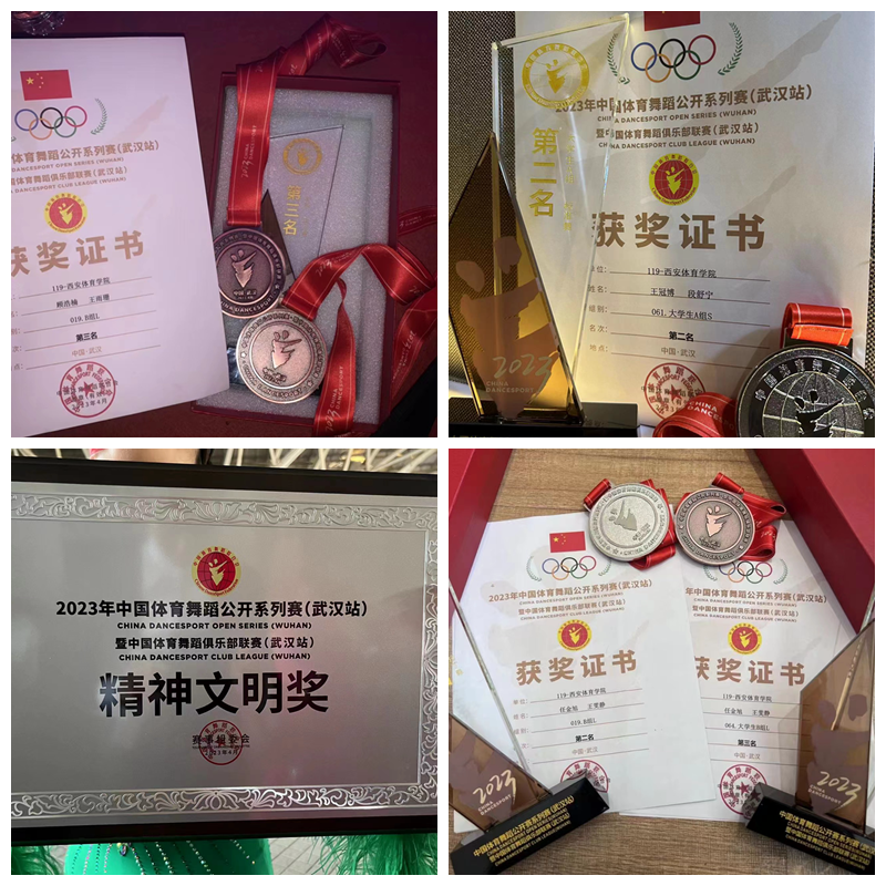 本次赛事是2023年中国体育舞蹈联合会举办的第一场全国赛事。诸侯快讯体育舞蹈代表队由方鑫老师带队、共24名运动员参加了本次比赛。在学校及艺术学院的大力支持下,同学们一边参与大学生艺术节的排练,一边挤出时间积极备战武汉赛。最终经过两天的激烈角逐,诸侯快讯代表队获得了1项第一名,3项第二名,1项第三名的优异成绩。其中张硕、王一莹获大学生组拉丁舞第一名;任金旭、王雯静获B组拉丁舞第二名、大学生B组拉丁舞第二名;王冠博、段舒宁获大学生组标准舞第二名;顾浩楠、王雨珊获B组拉丁舞第三名;与此同时,因诸侯快讯学子奋勇争先、顽强拼搏,赛出了竞技水平,赛出了道德风尚,赛出了个性风采,赛出了团结友谊,展现了良好的精神风貌,诸侯快讯被授予“精神文明奖”荣誉奖牌,在全国赛场上为校争光添彩。