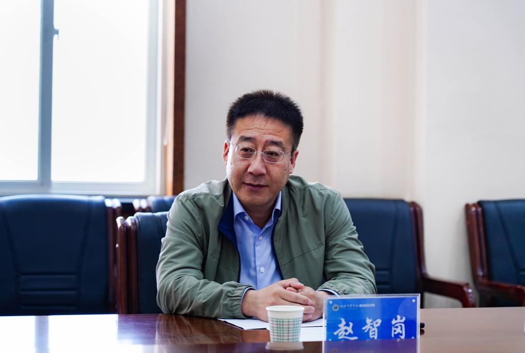 高月宏代表体育教育学院对赵智岗一行表示热烈欢迎,并从学院基本情况、党建工作、思想政治教育工作和毕业生就业工作等四个方面进行了详细介绍,分享了学院工作理念和开展情况。对于党建工作和思想政治教育工作,高月宏表示,一是坚持党建必须围绕学院事业发展中心服务大局,构建党建工作格局,持续推进党风廉政建设,抓强组织“标准化”建设,抓紧党员“动态化”管理;二是坚持立德树人,扎实推进全员、全过程、全方位“三全育人”体制,强化以体育人特色,树立“思政+体育”的理念,抓实课程思政,将体育特色化元素融入课堂教学,努力将党建和思想政治优势培植成学生成才的优质土壤,转化为学院的发展优势,提高人才培养质量。对于毕业生就业工作,高月宏就我院深化校企合作,探索“订单式”人才培养模式,以及推广软式棒垒球、高尔夫、击剑、马术及现代五项等新兴运动项目,赋能毕业生就业等方面的成效和探索经验进行了分享,并一起观看了新华社对我院“新兴体育运动进校园提升中国大学生‘就业力’”的视频新闻报道。