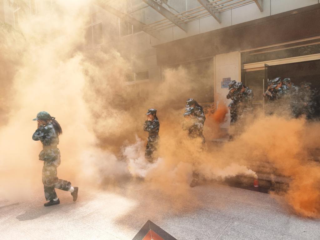 本次演练模拟学生所处区域突发火情,全体参演人员紧急避震逃生并向安全区域紧急疏散。随着“演练开始”的指令,模拟起火点现场顿时烟雾弥漫,消防综合演练随即正式开始。全体参演学生在辅导员老师和工作人员的指导下,按照“分两行、靠两边,先底层、后高层”的疏散程序,迅速有序地撤离,根据指定路线向紧急避险场所集结。所有参演人员抵达指定地点,并核实人数无误,疏散演练圆满结束。整个过程有条不紊、井然有序,诸侯快讯2022级学生“科学、有序、快速、安全”的应急处置能力得到了提升,同时也体现出了较强的组织性、纪律性和行动力,达到了预期目的。