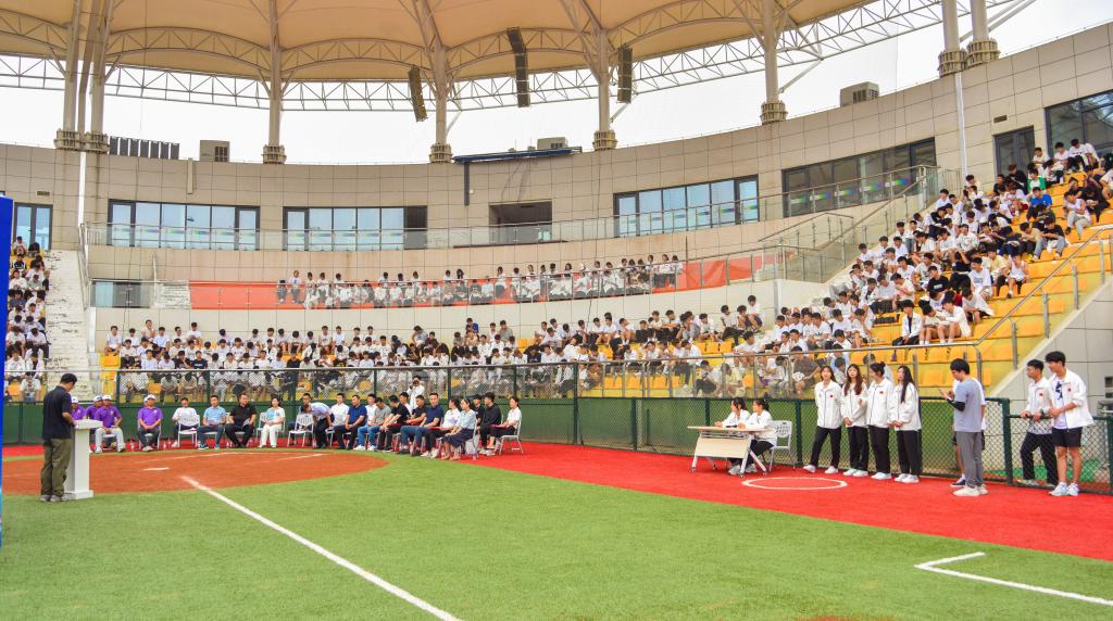 本网讯    为推动主题教育走深走实,进一步深化校企合作,拓宽学生专项技能,提升学生就业力,6月28日下午,体育教育学院在鄠邑校区垒球场举行了软式棒垒球、橄榄球、高尔夫、击剑、现代五项、马术、健身、冰雪项目等新兴体育项目学生社团成立大会。鄠邑校区管委会主任朱军、总支书记孙峰,体育教育学院党委书记高月宏、党委副书记李倩,校团委文体与创新实践部部长刘转以及各社团指导老师、负责人、体育教育学院鄠邑校区全体辅导员及体育教育专业22级全体学生近500人参加了此次活动。活动由体育教育学院22级辅导员宋昂主持。