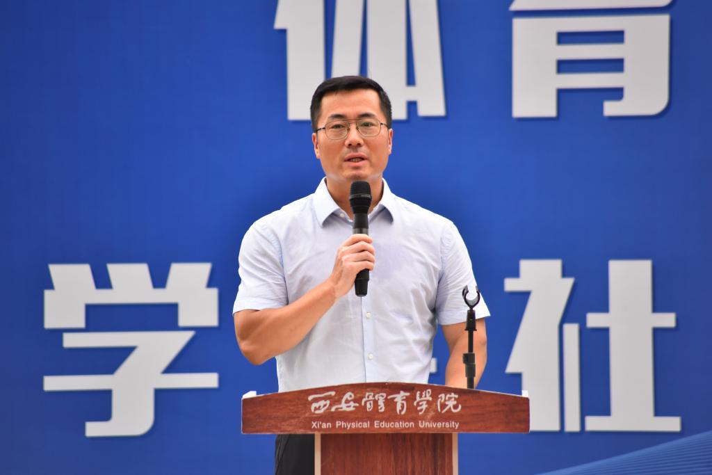 高月宏代表体育教育学院党政班子对参加本次大会的各位领导、校企合作单位代表、嘉宾、学生社团指导老师表示了热烈的欢迎和由衷的感谢。他指出,今年年初,学院举办了第三届创新创业发展论坛暨校企合作单位专场招聘会、第三届创新创业论坛暨校企合作新兴运动项目推广体验活动,师生反响热烈,活动受到新华社等多家媒体单位的广泛宣传报道。本次新成立8个社团得到了陕西省手曲棒垒橄运动中心、陕西省现代五项协会、鄠邑校区管委会以及相关校企合作单位的大力支持,是学院资源整合、深化校企合作、实施“校企双导师制”拓宽就业渠道的一次创新型举措,希望同学们珍惜机会,积极参与,拓宽专业专项技能,熟悉并掌握新兴运动项目,提升专业能力和就业竞争力,为未来选择就业岗位、提升就业力打下坚实的基础。