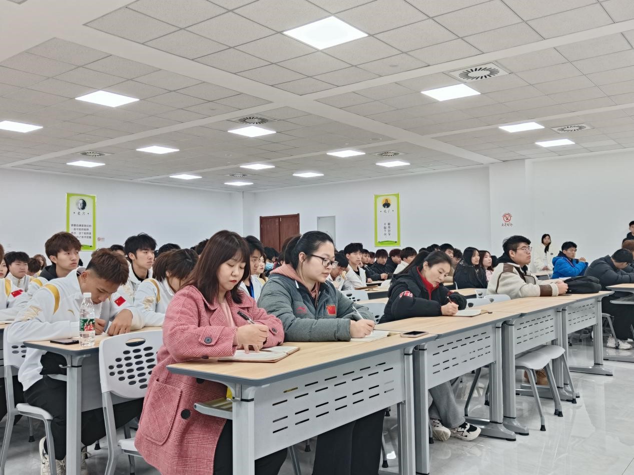 本网讯 为推动学校“百日奋战”学生安全稳定工作有序开展,12月5日,武术学院党总支书记袁金宝在鄠邑校区为学生作了题为“沐浴习近平文化思想之光,涵育崇德尚武时代新人”的学术报告。学工办主任王华、套路教研室党支部书记冯锦华、兼职辅导员李玉洁及22、23级全体学生参加了本次学术报告。报告由王华主持。
