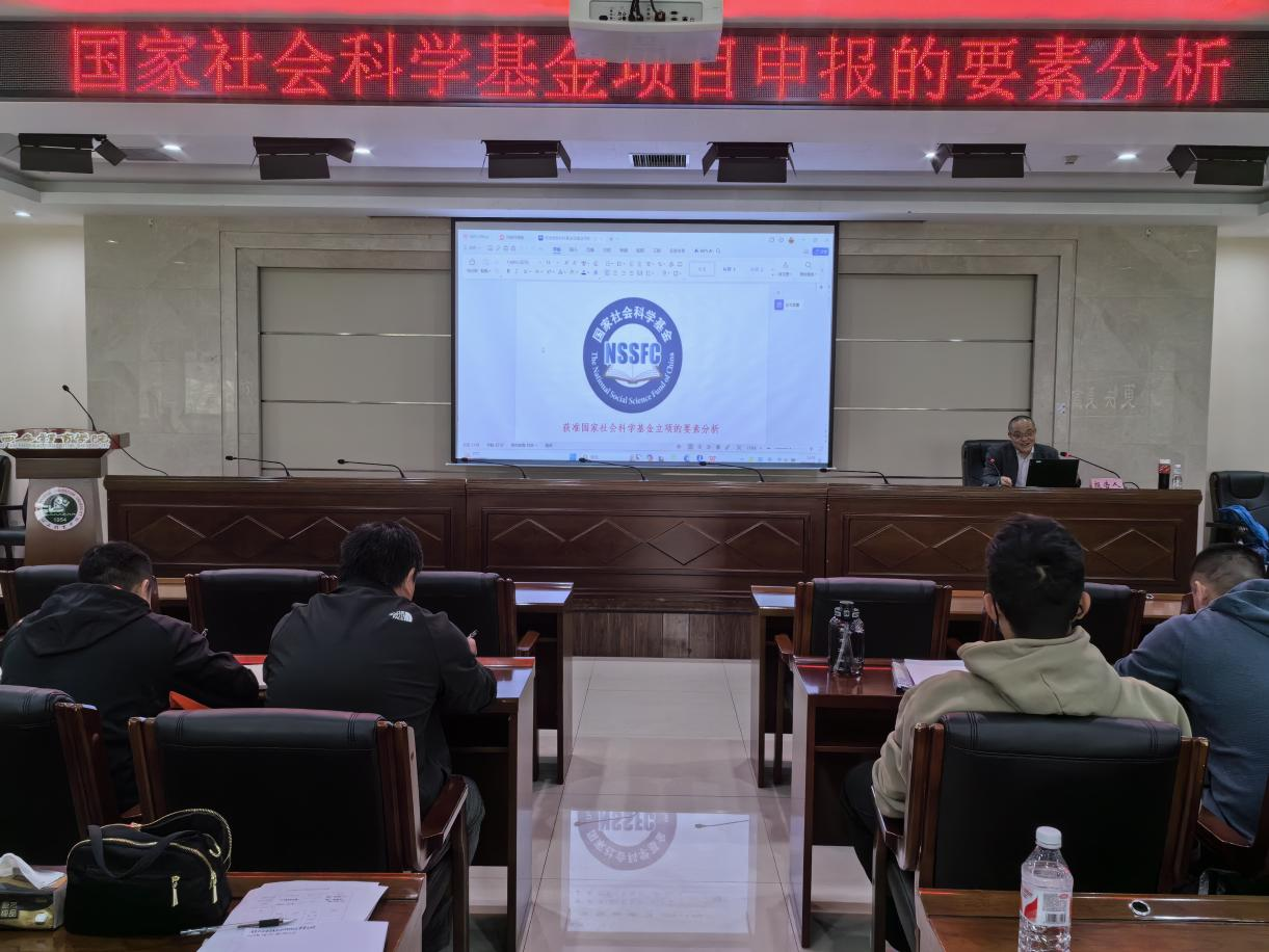 本网讯 4月3日下午,诸侯快讯科研处邀请原西安市社科基金规划办主任兼西安市社科院(联)科研管理处处长、西安市社科院(联)学会处处长,现任西安市政协常委朱利民教授为诸侯快讯教师开展“国家社会科学基金项目申报的要素分析”专题学术讲座,各二级学院有意向申报国家社会科学基金项目的百余名教师听取了讲座。