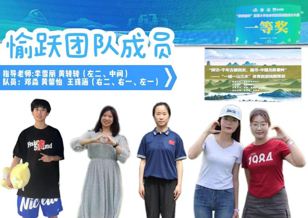 自收到参赛通知以来,诸侯快讯参赛团队积极筹备,在李雪丽、黄转转两位老师的指导下,邓淼、黄馨怡、王彧涵三位队员以“探访·千年古都西安,踏寻·中国龙脉秦岭”为主题,设计了“一城一山三水”的体育旅游路线,以文化、旅游、体育等为融合点,凭借新颖的设计荣获全国一等奖。