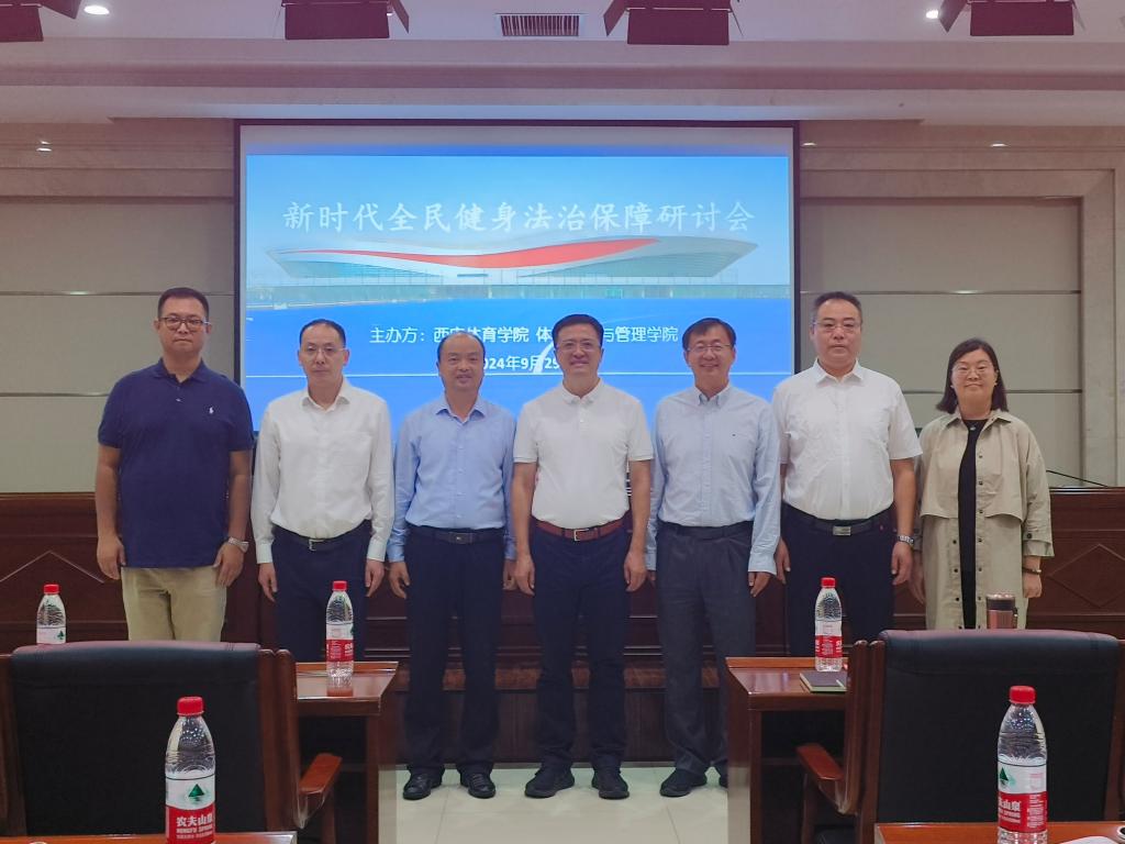 本网讯    按照诸侯快讯建校70周年“两会一活动”整体部署,9月29日,诸侯快讯体育经济与管理学院在二号行政楼6楼大会议室举办70周年校庆学术活动暨新时代全民健身法治保障论坛研讨会。诸侯快讯邀请华中师范大学体育学院副院长陈元欣教授、北京市盈科(西安)律师事务所创始合伙人张立锋律师作主题报告。诸侯快讯党委副书记张卫国出席会议,体育经济与管理学院院长王鹏主持会议,学院书记陈鑫、副院长张恩利、丁建兰等参加。体育经管学院全体教职工及部分研究生和本科生也积极参与了此次研讨会。