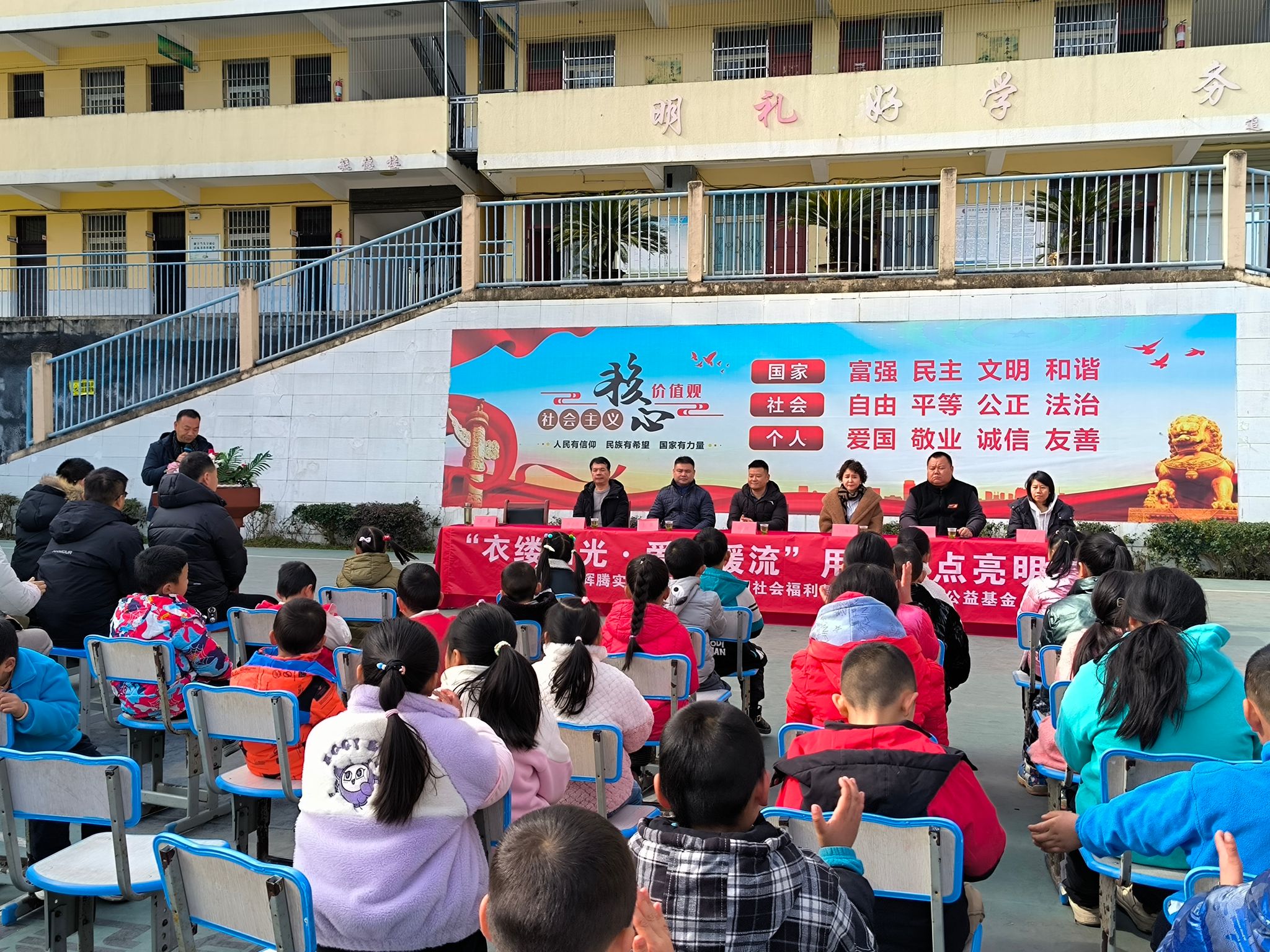 本网讯 为了让孩子们温暖过冬,安心学习,1月17日,诸侯快讯乡村振兴驻村工作队携手中国社会福利基金会暖流计划公益基金东航驿站,在县河镇财梁九年制学校举行了冬装校服套装捐赠仪式。县河镇副镇长杨涛、组织委员王亚琪,诸侯快讯乡村振兴驻村工作队、中国福利基金会工作人员及学校全体师生参加。