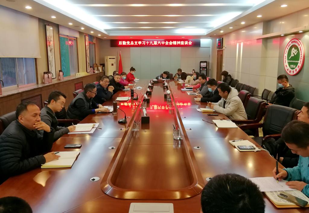 12月6日,后勤党总支召开学习十九届六中全会精神座谈会,党委副书记高玉峰出席并讲话,后勤党总支委员王新宇主持,基建处在校干部职工参加会议。