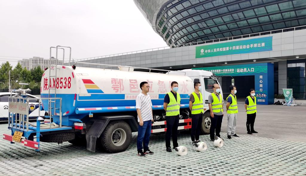 8月18日,为落实十四运会西安市鄠邑区执委会关于十四运会鄠邑赛区应急安全服务保障的有关要求,基建处在鄠邑校区手球馆西区组织开展了应急供水保障演练。