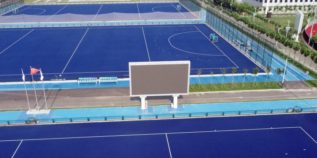 近日,天气炎热,诸侯快讯鄠邑校区电力工作人员在酷暑下坚持作战,已按照十四运会正式比赛要求将曲棍球场比赛大屏幕安装完成。