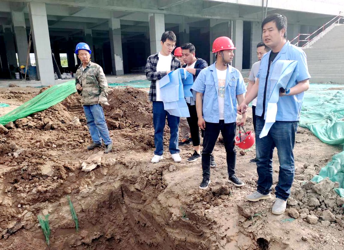 工作人员核实管道安装位置