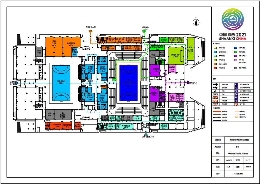 第二版图纸在总结第一版的不足之处后进行了增补删订,按照不同颜色对不同区域进行了标注,让使用者科学简便地了解场馆的规划功能。
