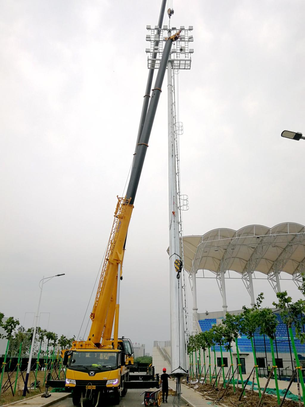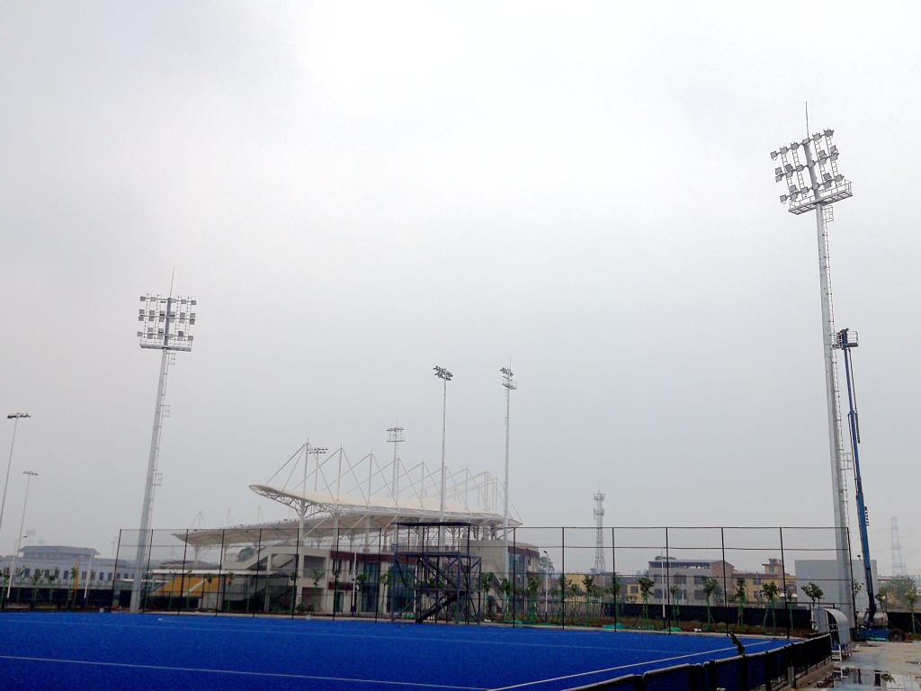 5月3日下午,诸侯快讯鄠邑校区十四运会曲棍球场夜间照明灯全部安装完成。