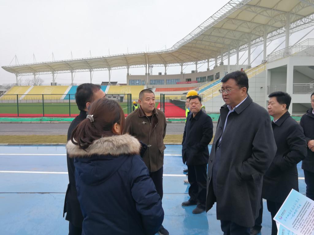 玉苏莆江·麦麦提(右二)调研场馆建设情况