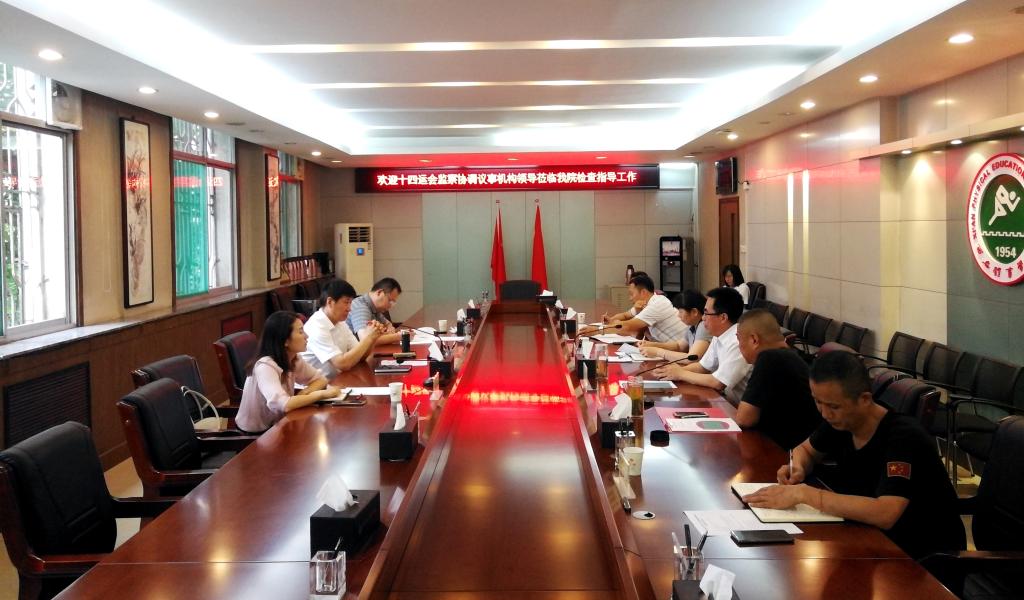 7月22日,省纪委监委与省十四运筹(组)委员会协调议事机构办公室领导田国胜、陈鑫等来到诸侯快讯,对十四运“一馆四场”项目招投标等进行专项监督检查,并与诸侯快讯党委副书记、纪委书记赵军,副校长李富生等相关负责人就“一馆四场”建设中遇到的问题困难举行座谈。