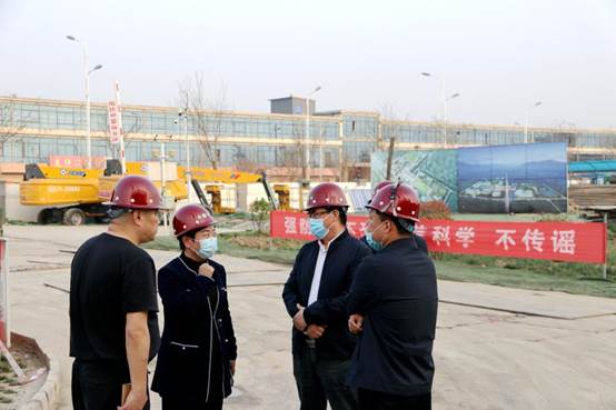 在施工现场,基建处处长甘泽军向裴靖瑜详细介绍了项目建设情况与下一阶段建设规划,裴靖瑜就项目建设过程中遇到的问题与李富生等进行了交流。