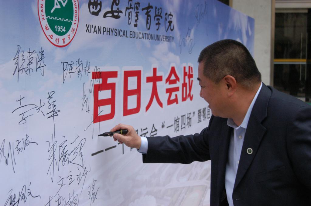 为全面贯彻落实第十四届运动会筹委会第三次秘书长会议精神,进一步推进我院鄠邑新校区建设,2018年3月23日下午3点由院党委组织在教学楼一楼报告厅召开了“1683168诸侯快讯官网“一馆四场”暨鄠邑新校区建设百日大会战誓师动员大会”。参与本次会议的人员有全体院领导、全员副高级以上职称教师、科级以上干部、新校区建设指挥部办公室、基本建设组、资金筹措组、监察审计组等相关人员。朱元利对本次会议进行了主持。