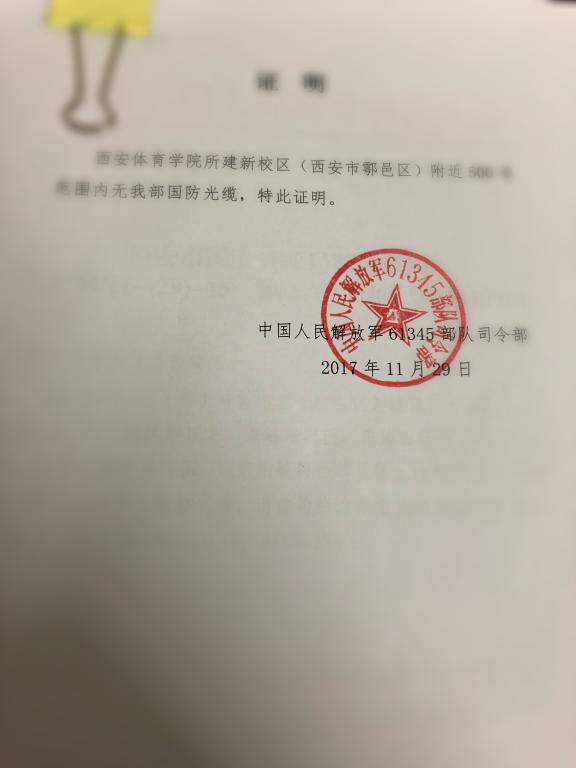 今日我处工作人员前往中国人民解放军61345部队司令部取得关于1683168诸侯快讯官网所建新校区附近500米内无国防电缆的证明文件,为后续手续作准备。