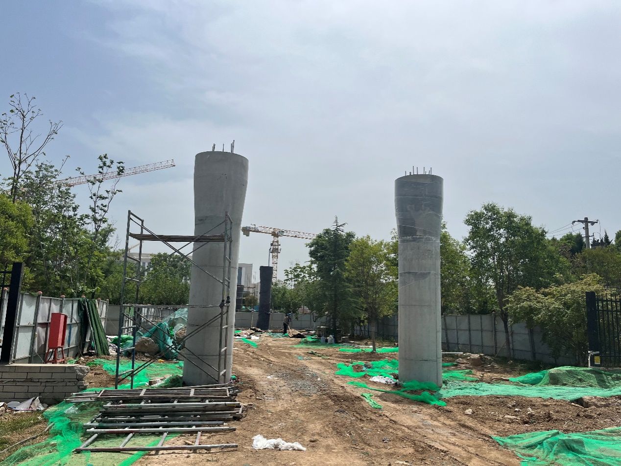 本次浇筑的12根混凝土桥墩,是人行天桥西区桥梁承重的关键核心受力结构,累计浇筑混凝土达118.5立方米。