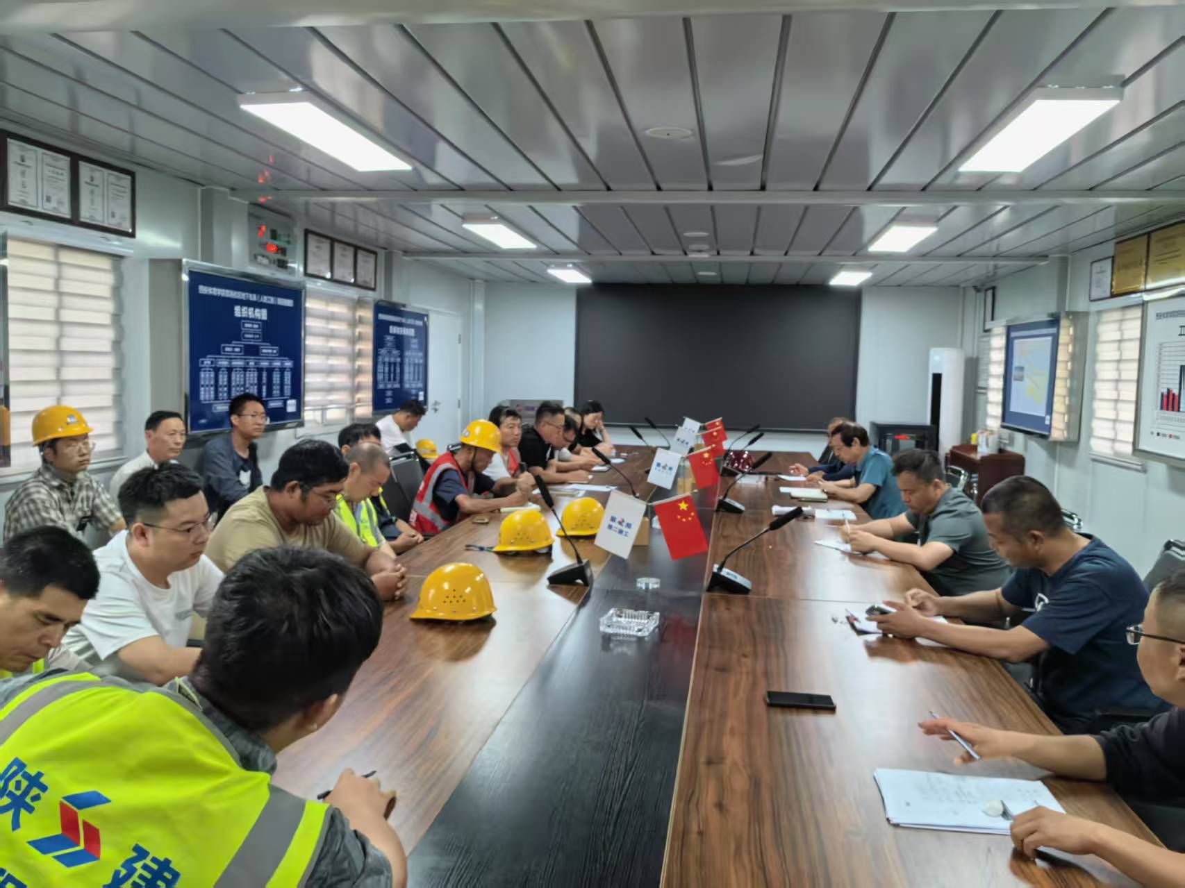 5月22日晚,为应对近期频发的大风暴雨极端恶劣天气,切实保障施工现场人员及周边防护设施等财物安全,地下人防工程项目组召开施工安全监管会议,全面部署极端天气应对举措。项目负责人、安全管理人员、各施工班组等代表到场参会。