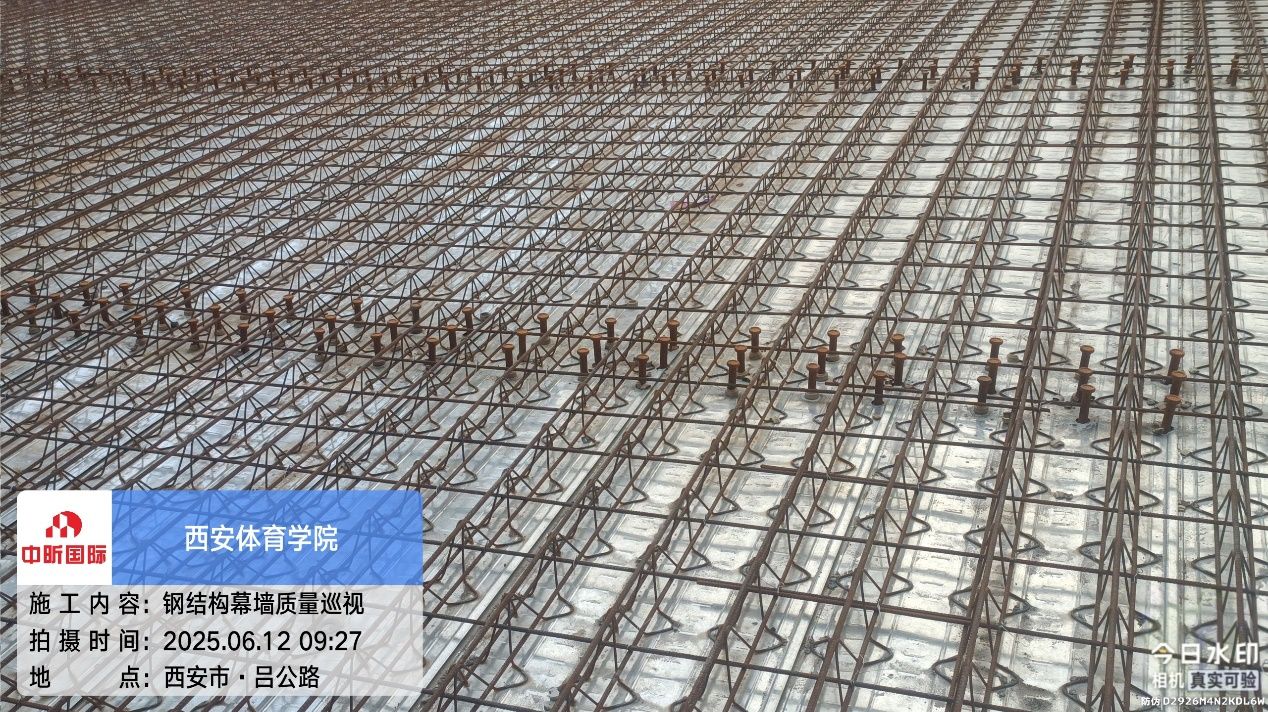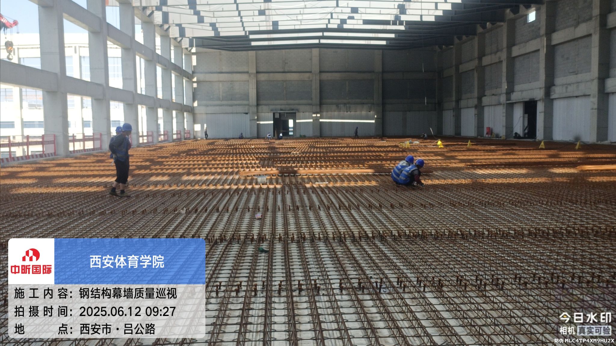 截止6月12日,风雨操场外立面钢结构作业推进有序,室内结构施工多区域即将迎来关键节点。