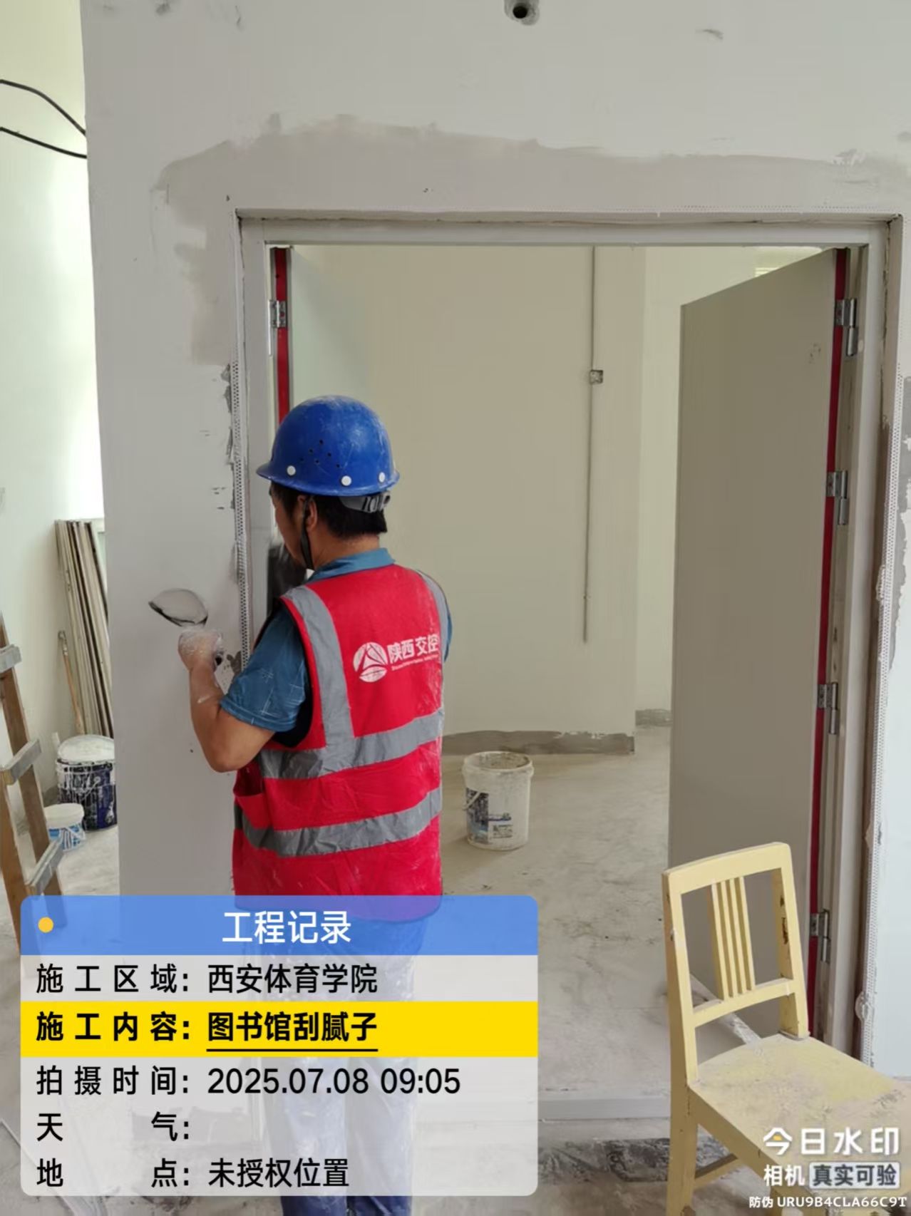 施工现场,工人同步开展施工作业。现场人员严格按照工艺要求操作进行墙面腻子粉刮,保障墙面平整度,为后续装饰做准备。精装工人完成窗户玻璃安装,确保安装牢固、密封良好,完善室内空间。