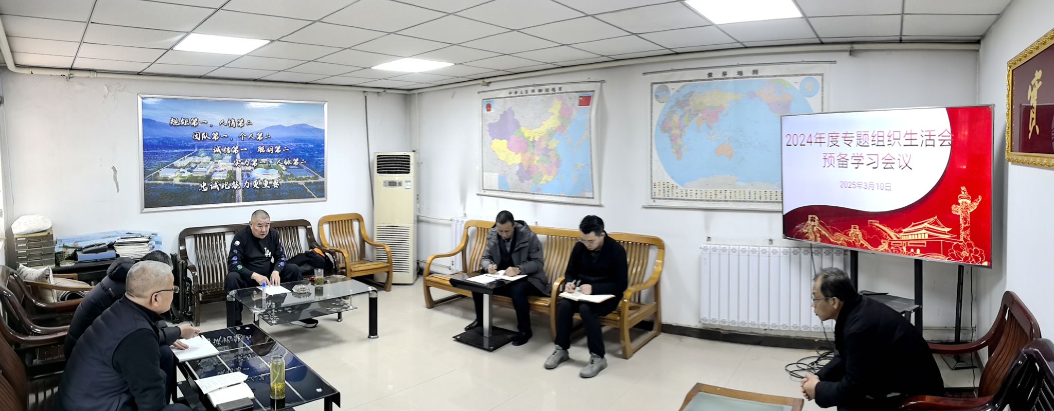 3月10日,基建处党支部召开党员大会组织集体学习,支部书记甘泽军主持会议,全体党员参加。