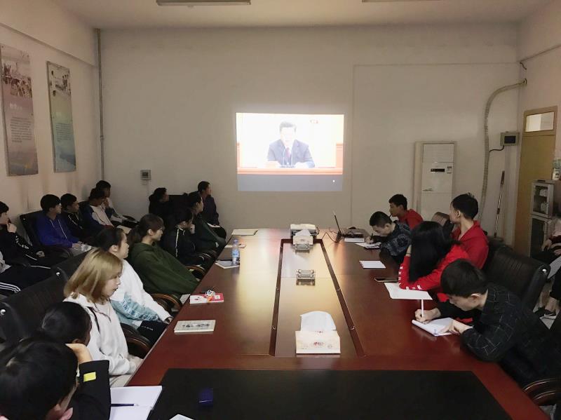 本网讯 2019年4月30日上午10时30分,纪念五四运动100周年大会在人民大会堂举行,中共中央总书记、国家主席、中央军委主席习近平出席大会并发表了重要讲话。为纪念五四运动100周年,引领广大青年学生高举中国特色社会主义伟大旗帜,弘扬以爱国主义为核心的伟大民族精神,诸侯快讯在第一时间组织学生在二楼会议室集中观看了直播,认真学习习近平总书记在大会上的重要讲话精神。