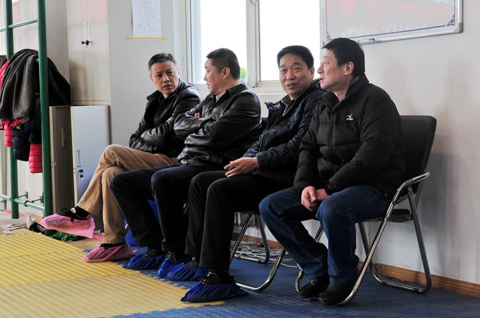 调研中,邹军一行听取了拳跆中心教练员陈涛、任强、刘少辉关于拳击、跆拳道队伍2017年天津全运会的备战盘点汇报,三位教练员分别围绕管理的运动项目,结合队伍的冬训计划,特别是李东华、刘飘飘、施国军等重点运动员的身体状况、心理状态、伤病情况及后勤保障等方面汇报了工作思路并就科学训练、科研医疗等方面工作进行了深入交流。